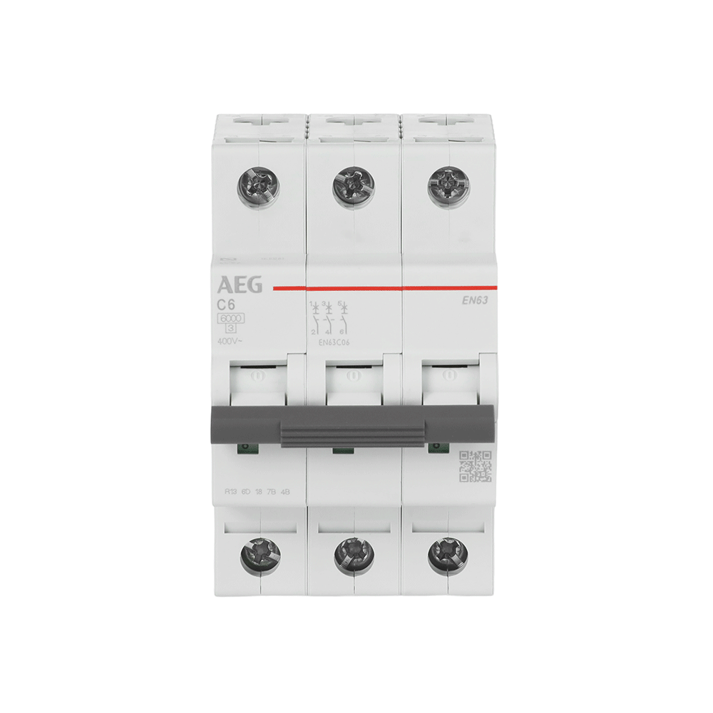 Leitungsschutzschalter schützen und steuern Stromkreise gegen Überlast und Kurzschlüsse. Durch den Einsatz eines LS wird eine zuverlässige und sichere Elektroinstallation sichergestellt. Leitungsschutzschalter EN60 (6kA) der AEG Line sind sicher und zuverlässig: Höchster Isolationsgrad IP40, Knebelsperre, Plombierbare Anschlüsse. Anwenderfreundlich. Multifunktional: Anbau von Zubehör möglich sowie kaskadierbar. Ein Gerätetyp für alle Hauptfunktionen, Fernauslöser und Unterspannungsauslöser, Hilfsfunktionen. QR-Code auf den Geräten für weitere technische Informationen. Einfach zu installieren: Sowohl Stift- als auch Gabelanschlüsse verwendbar, Hohes Anzugdrehmoment 4,5 Nm, Großzügig dimensionierte Anschlußklemmen Leitungsschutzschalter 35mm². Bemessungsströme von 6 bis 63A in B- und C-Charakteristik.