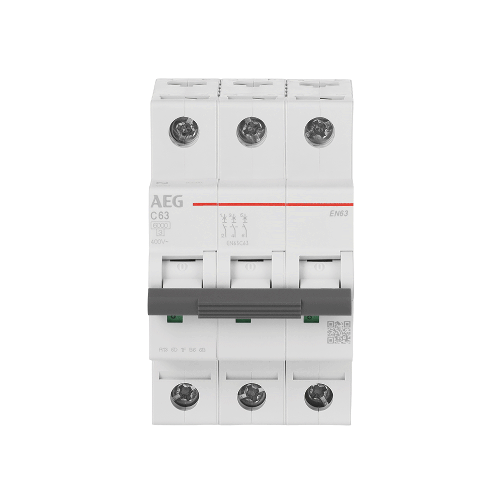 Leitungsschutzschalter schützen und steuern Stromkreise gegen Überlast und Kurzschlüsse. Durch den Einsatz eines LS wird eine zuverlässige und sichere Elektroinstallation sichergestellt. Leitungsschutzschalter EN60 (6kA) der AEG Line sind sicher und zuverlässig: Höchster Isolationsgrad IP40, Knebelsperre, Plombierbare Anschlüsse. Anwenderfreundlich. Multifunktional: Anbau von Zubehör möglich sowie kaskadierbar. Ein Gerätetyp für alle Hauptfunktionen, Fernauslöser und Unterspannungsauslöser, Hilfsfunktionen. QR-Code auf den Geräten für weitere technische Informationen. Einfach zu installieren: Sowohl Stift- als auch Gabelanschlüsse verwendbar, Hohes Anzugdrehmoment 4,5 Nm, Großzügig dimensionierte Anschlußklemmen Leitungsschutzschalter 35mm². Bemessungsströme von 6 bis 63A in B- und C-Charakteristik.