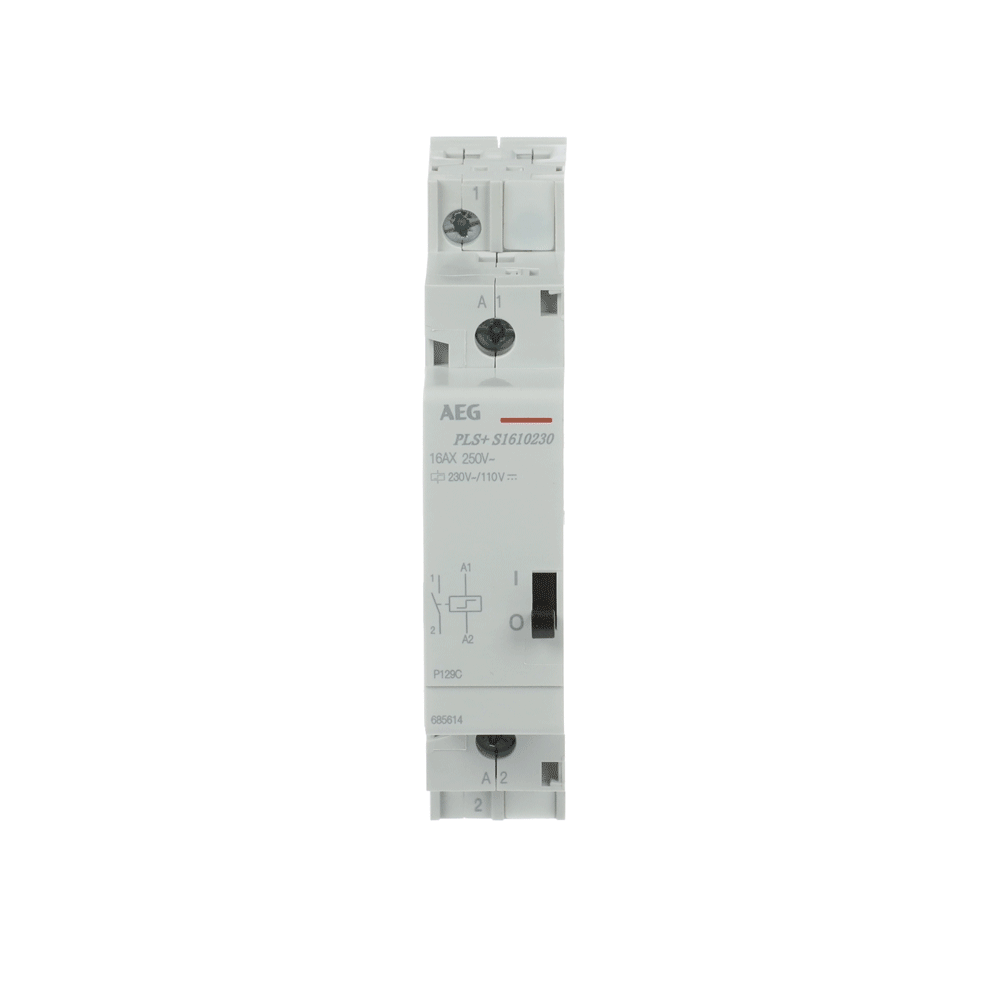 Funktion: Stromstoßschalter sind elektromechanisch gesteuerte Schalter, die zur Steuerung von ein- oder mehrphasigen Lasten mittlerer Leistung verwendet werden, während die Steuerung selbst eine (sehr) niedrige Leistung haben kann. Das Gerät schaltet zwischen 2 stabilen Positionen um, jedes Mal wenn ein (kurzer) Impuls seinen Steuerkreis erregt. Anwendung: Wird hauptsächlich zum Schalten von Beleuchtungs- und Heizungsanlagen und/oder zum Erzielen einer vereinfachten Verdrahtung verwendet, wenn die Last bei reduzierter Spannung und/oder von mehr als zwei verschiedenen Orten gesteuert werden soll. Merkmale: Neben dem normalen Betrieb durch elektrisches Erregen der Spule, ist die manuelle Bedienung jederzeit möglich. Die Schalterstellung wird durch die Position des vorderen Hebels für alle Geräte angezeigt. Die Version mit Zentralsteuerung wurde entwickelt, um mehrere Geräte gleichzeitig in die Ein- oder Aus-Position zu schalten, unabhängig vom aktuellen Status jedes einzelnen Gerätes. Auch in diesem Fall bleibt die Möglichkeit, direkt am Gerät zu schalten. Die Sicherheitsklemmen sind mit unverlierbaren Pozidriv-Schrauben ausgestattet und besitzen Schutzart IP20. Ein Anbau-Hilfskontakt, ein Anbau-Zentralsteuermodul und ein Abstandshalter sind verfügbar. Der Einsatz einer großen Anzahl von Leuchtdrucktastern ist möglich. Verschlusskappen für die Anschlussklemmen sind verfügbar. DIN-Schienenmontage: in vertikaler/horizontaler Position verwendbar