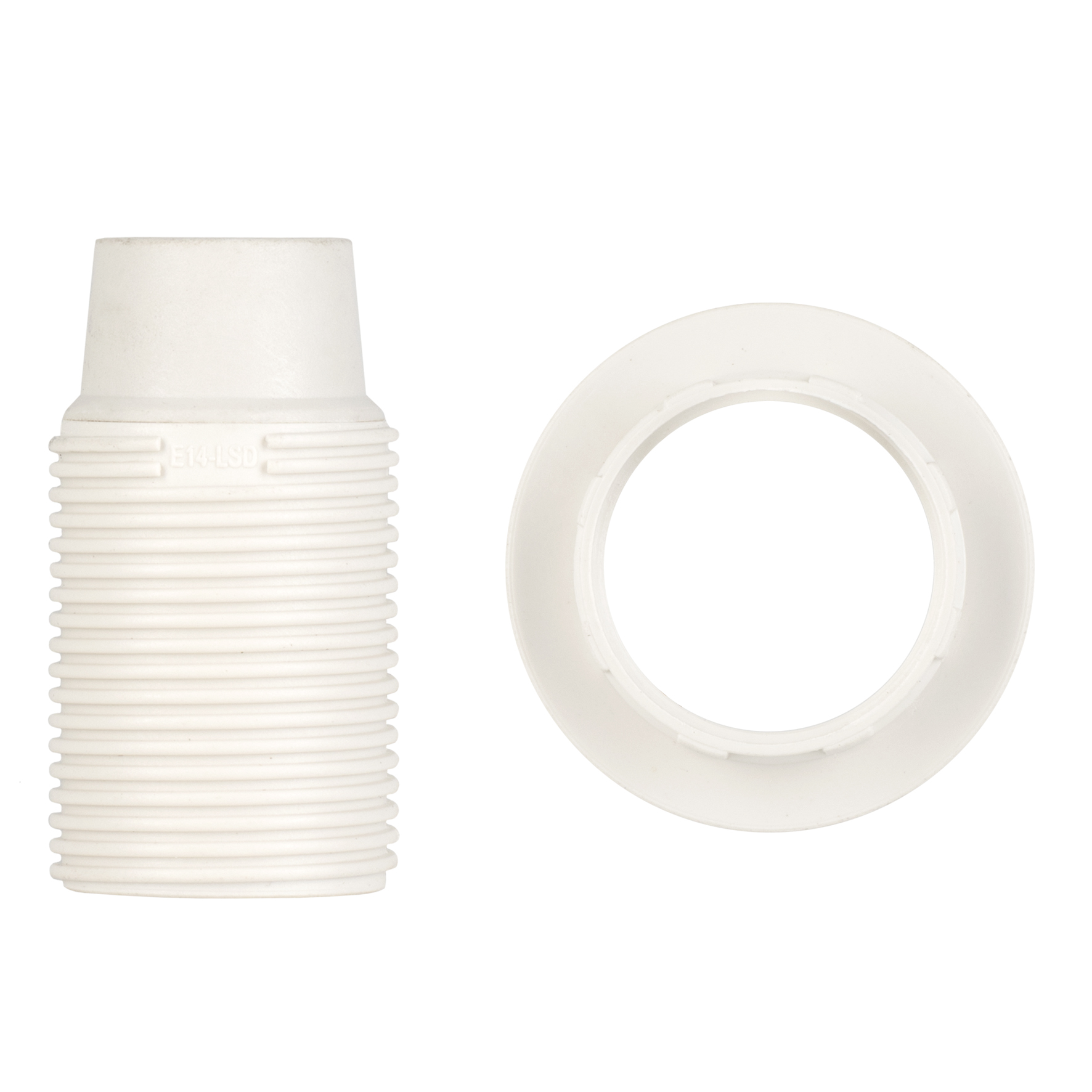 BAI Fassung E14 Thermoplastisch M10x1 Weiß Außengewinde mit Ring 43x52mm