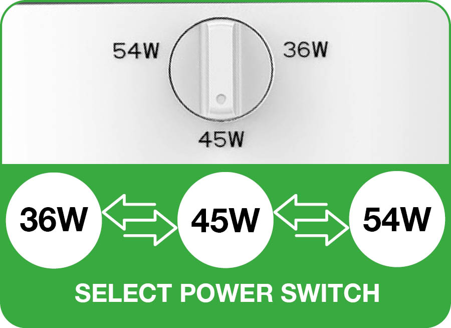 36W=4800lm 45W=6300lm 54W=7800lm 3000K