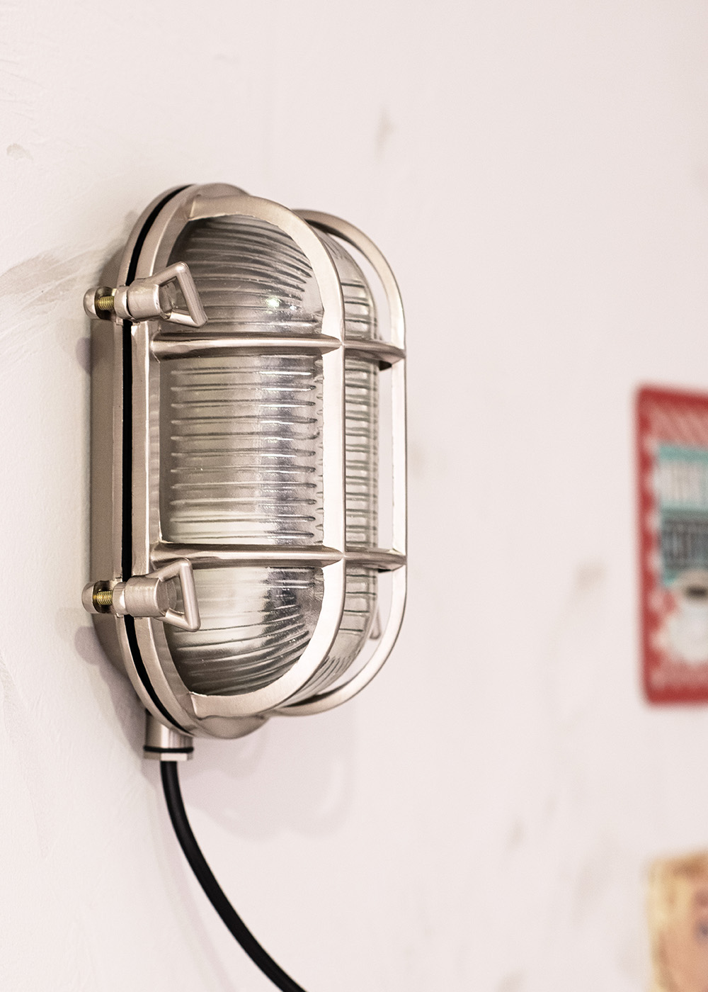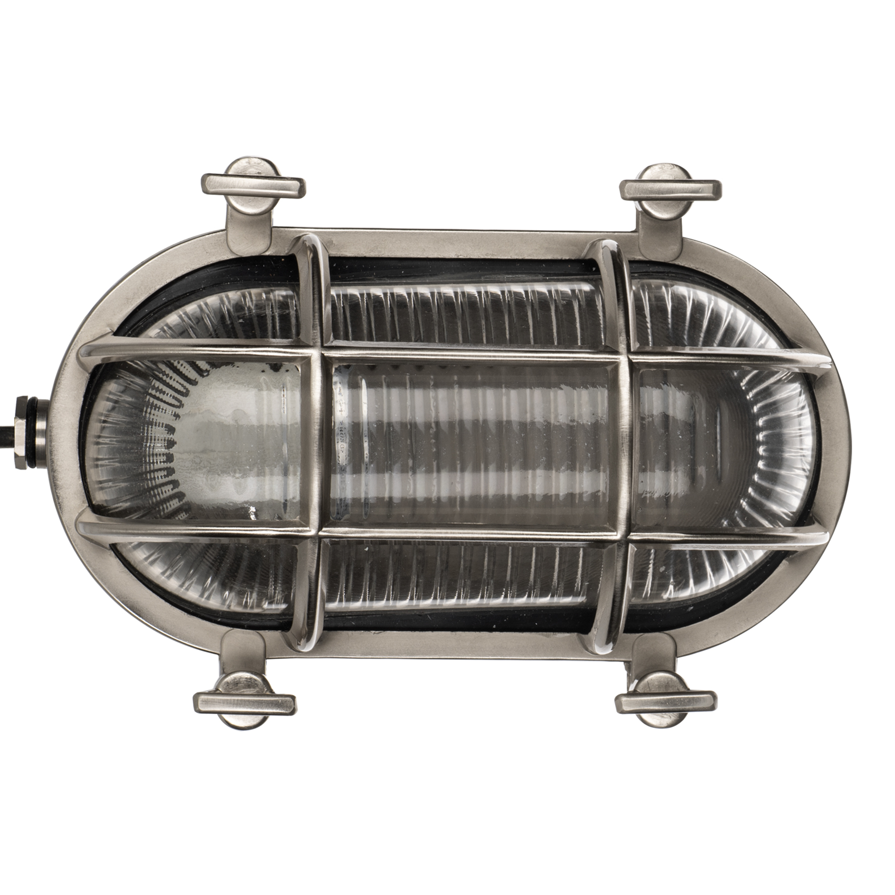 BAI Bulkhead AHOI E27 Alu Nickel Oval IP64 Outdoor CLI Max 60W 50cm Kabel 3x0.75mm² Nautische Kellerleuchte Schiffslampe