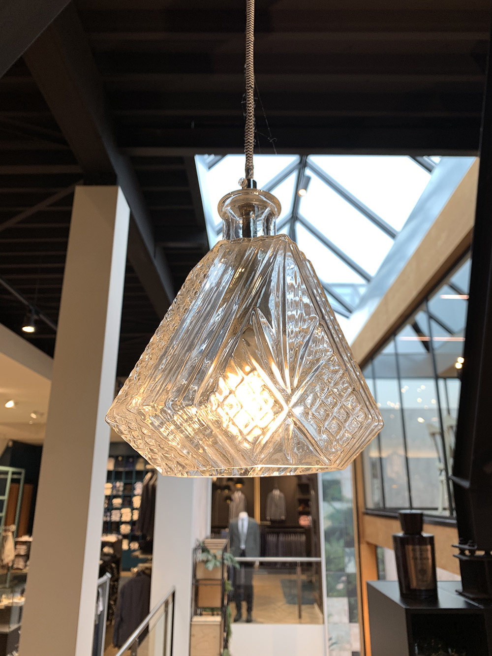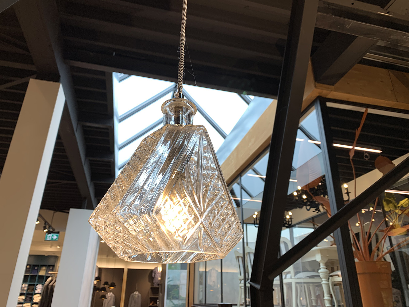 BAI Crystal Pendelleuchte Jim E27 Glas 1.5M Textilkabel Schwarz 2C und Deckendose Max 60W