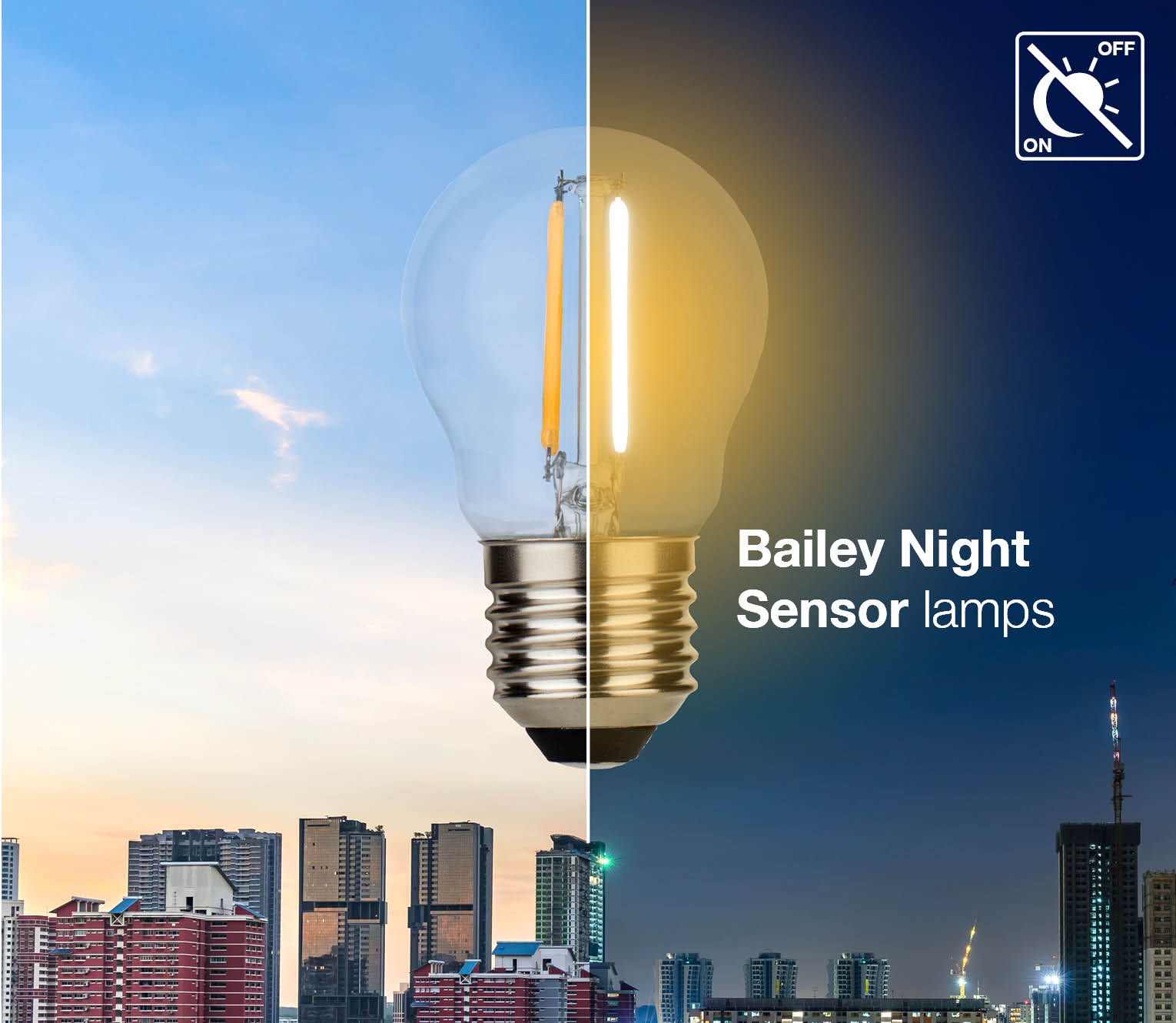 BAI LED Filament Sensor Tropfen G45 E27 2.5W 2700K Klar 300lm (28W) 230V-240V 320° 45x75mm Tag / Nacht Lux Sensor LED-Lampe