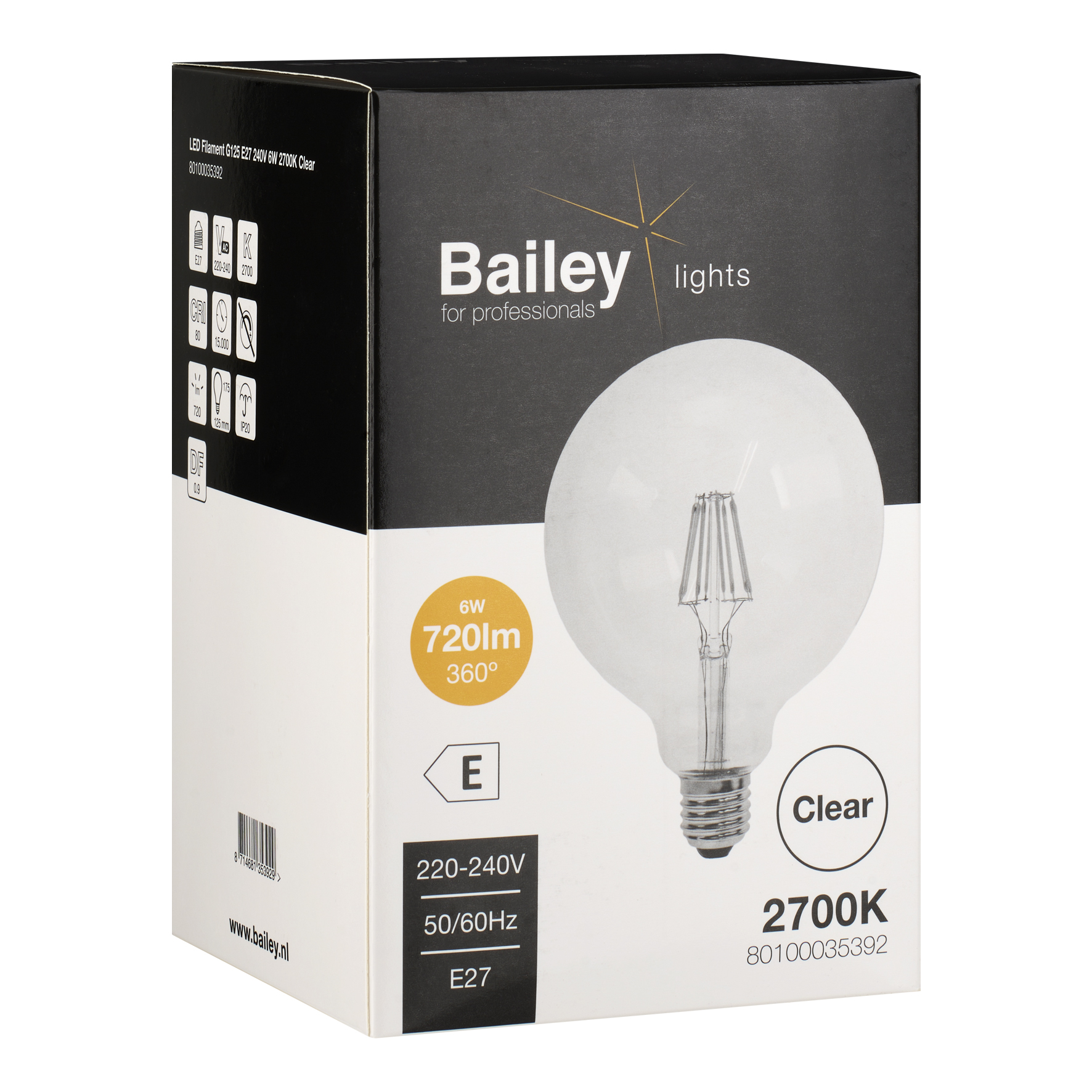 BAI LED Filament Globe G125 E27 6W 2700K Klar 720lm (55W) 230V-240V 320° 125x175mm LED-Lampe