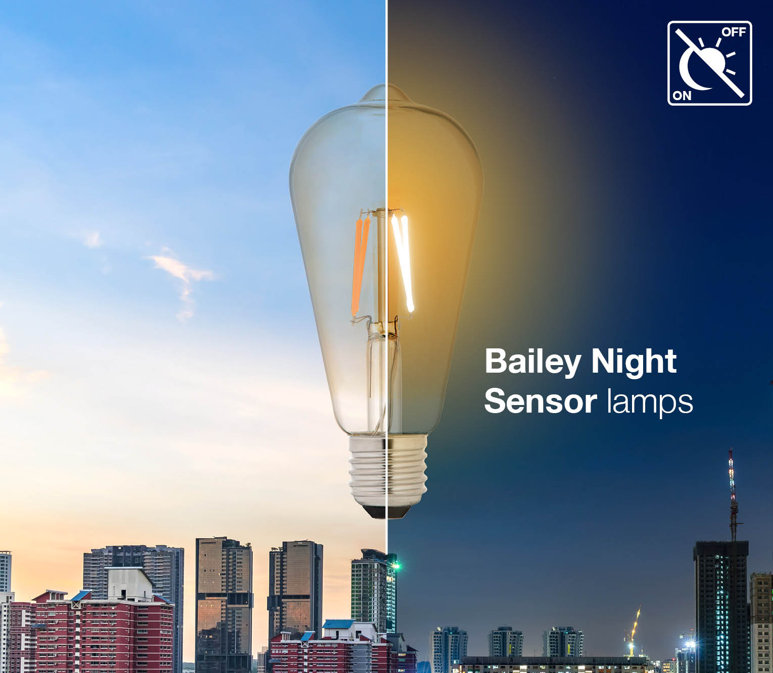 BAI LED Filament Sensor ST64 E27 4W 2200K Gold 300lm (29W) 230V-240V 320° 64x146mm Tag / Nacht Lux Sensor LED-Lampe