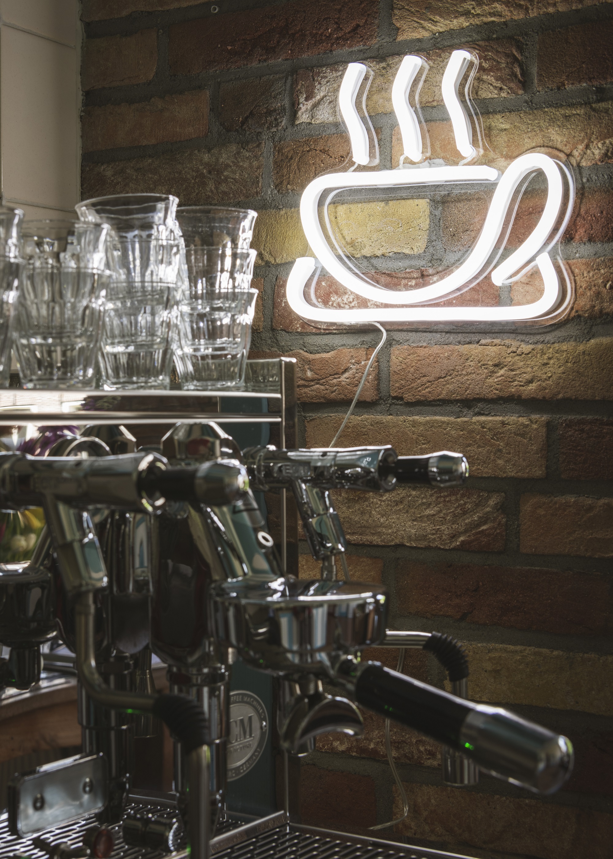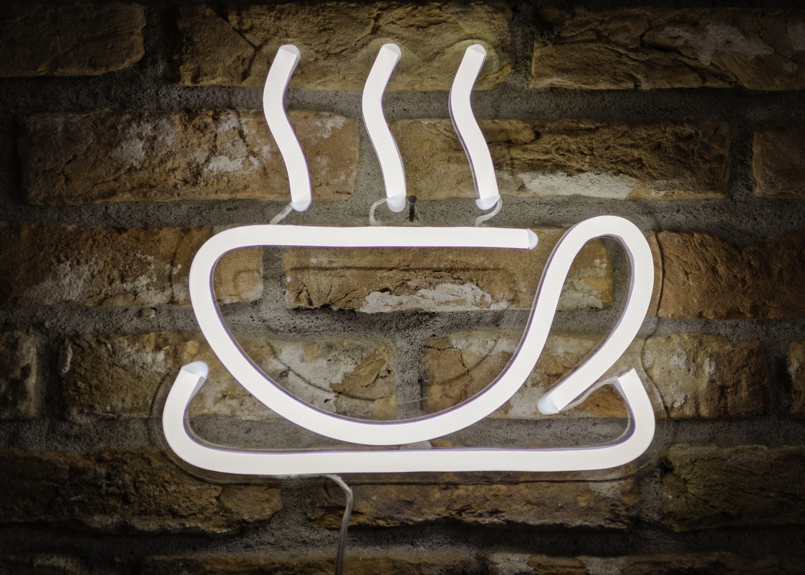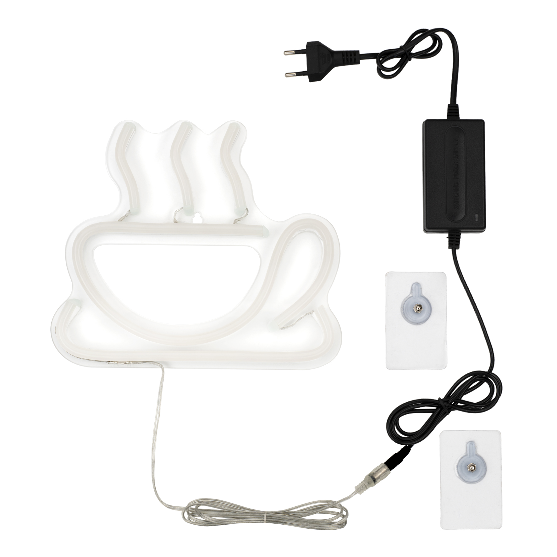BAI LED Neon Kaffeetasse 13W 8000K 50lm 22x25cm (120leds/m SMD2835) CRI=80 120° IP20 CLII 230V/12VDC EU-Stecker Adapter (3A) mit 2.5M Kabel
