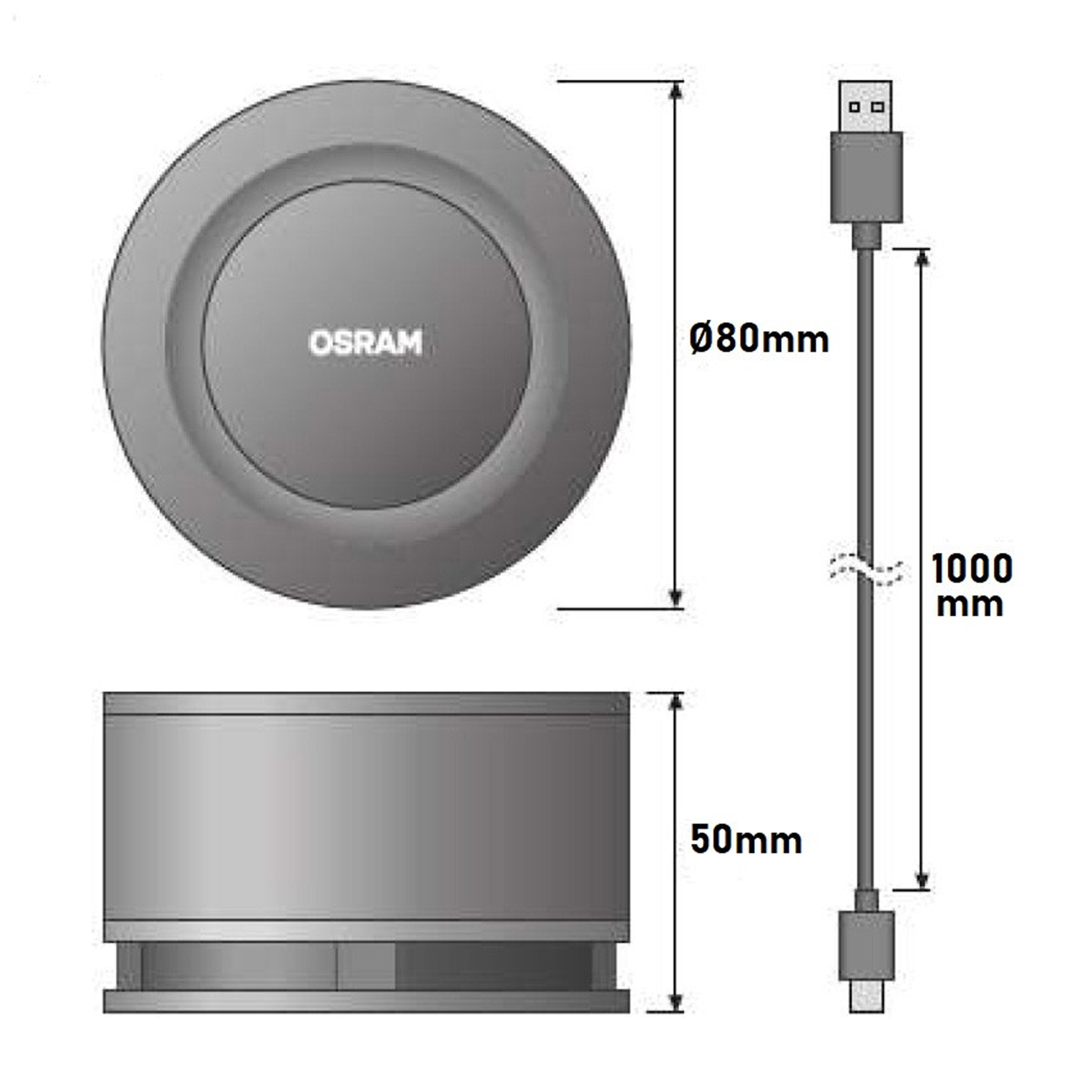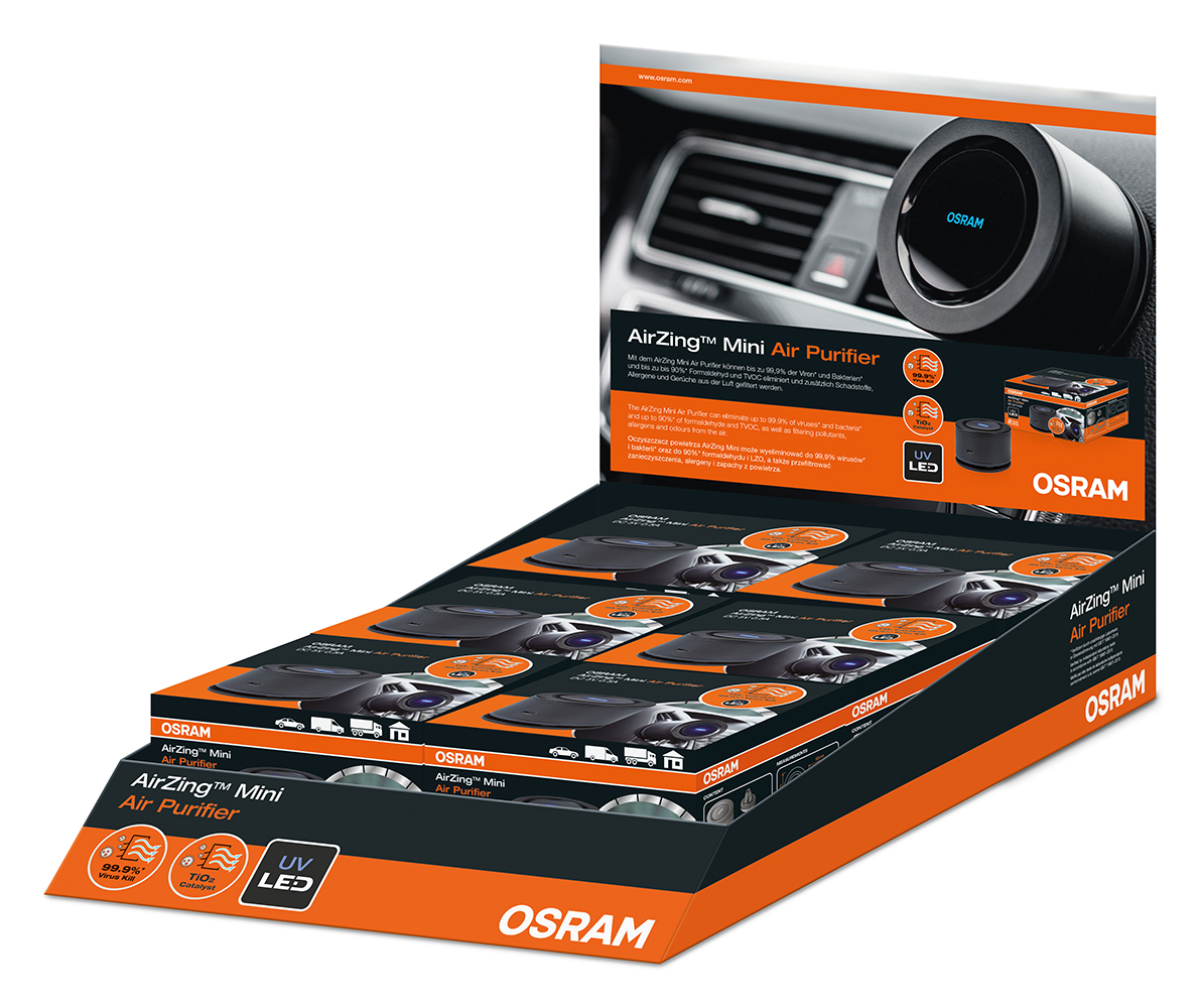 OSRAM AirZing Mini-Luftreiniger 5V 2W UV-A (360-370 nm) zur Verwendung in Fahrzeugen 80x50 mm 1m USB-Stromkabel DC 5V