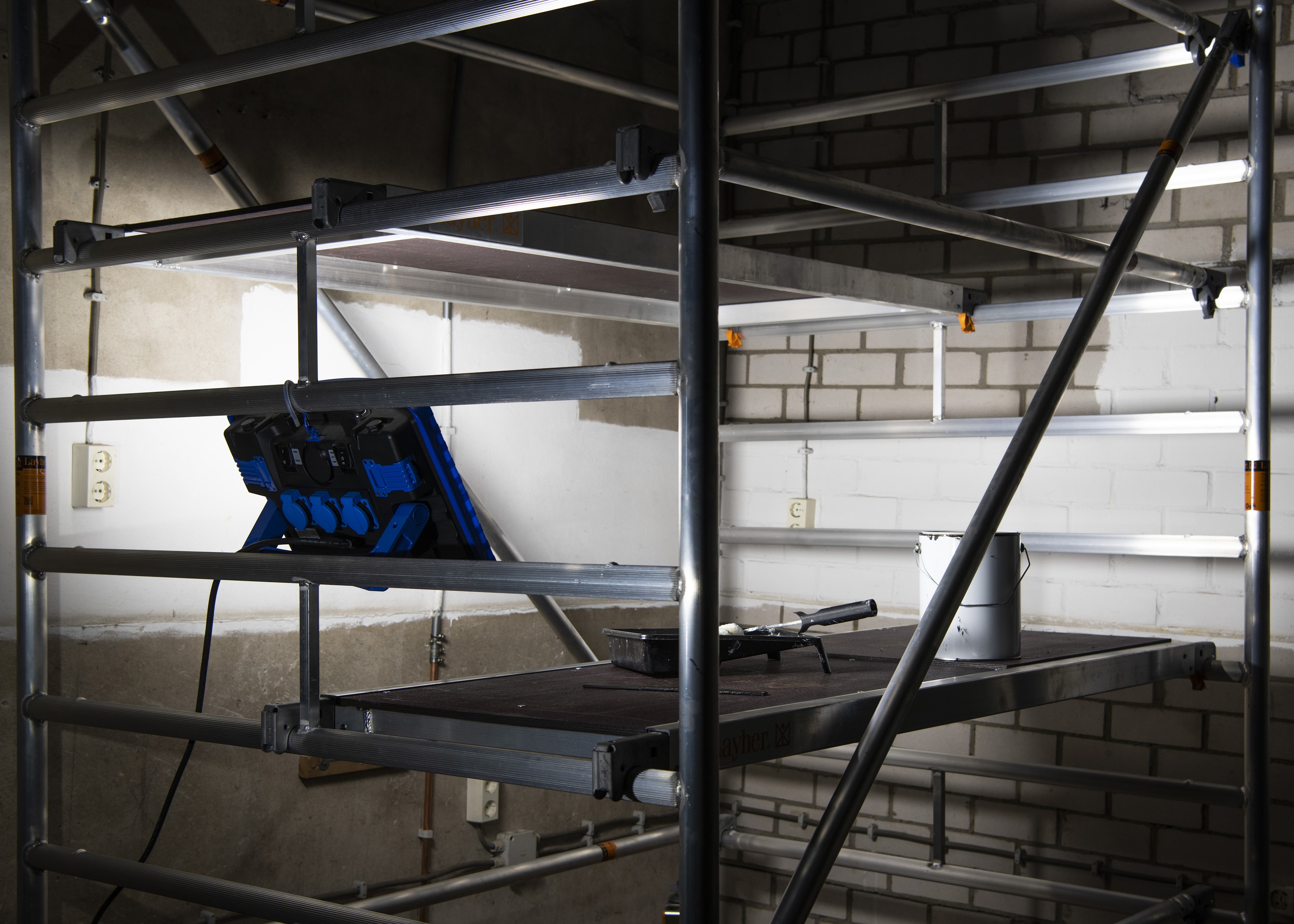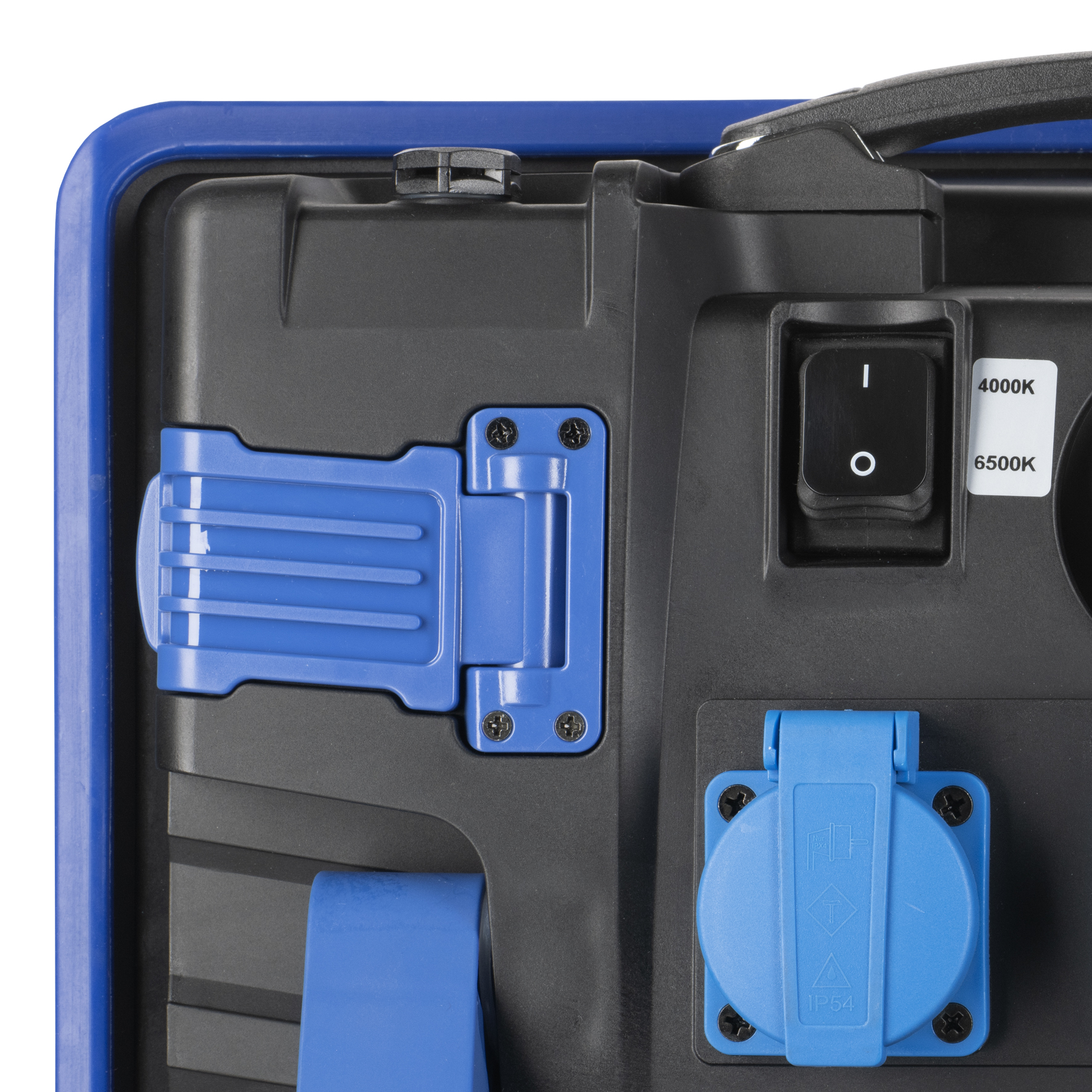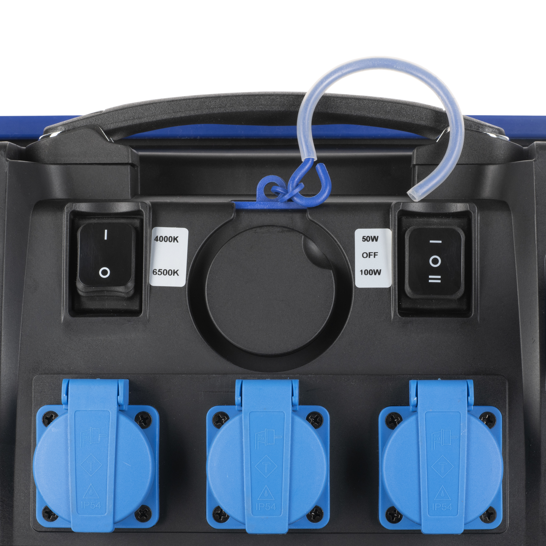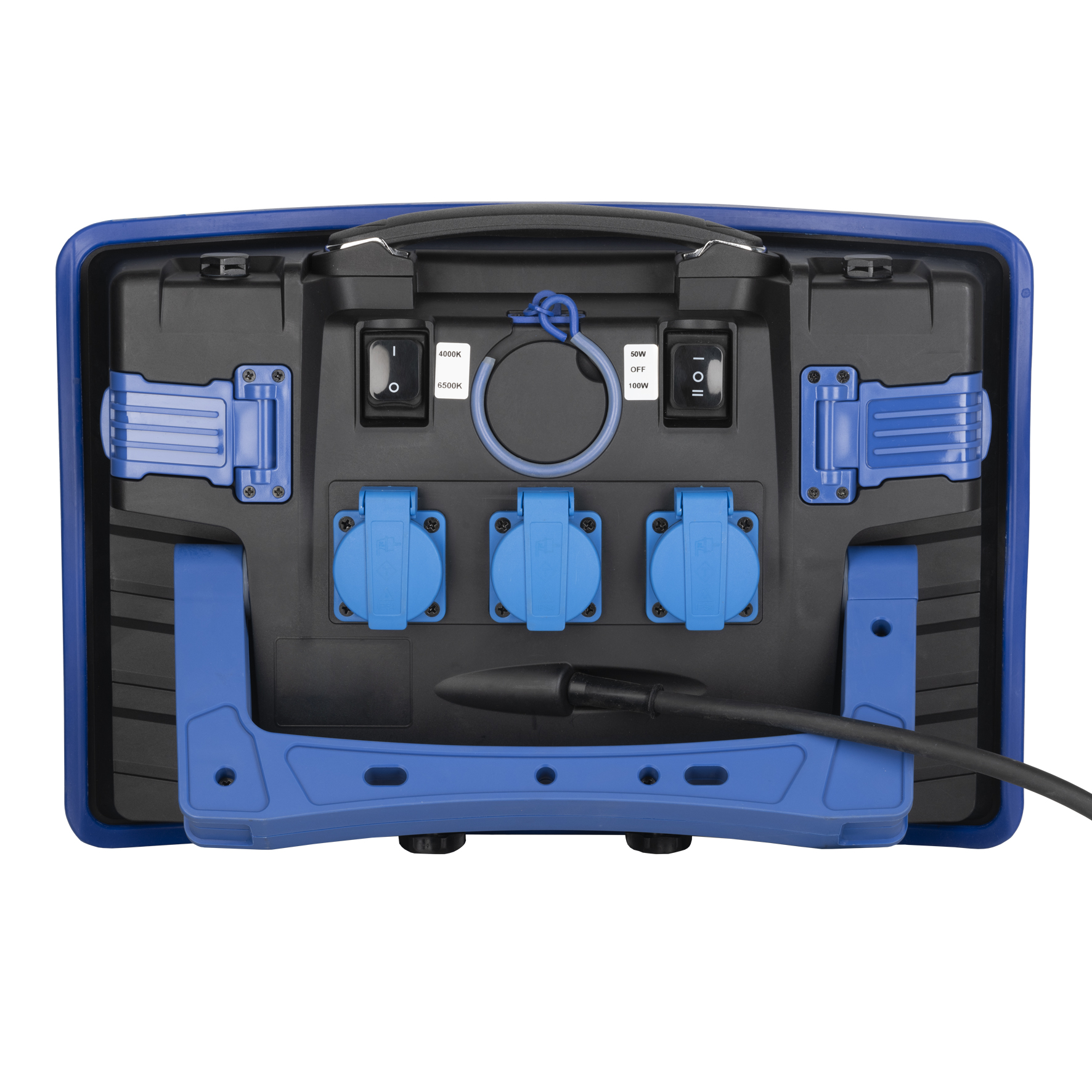 BAI RoBust LED Work Switch Portable Arbeitsleuchte CLI 50/100W 4000K-6500K 5000/9000lm dimmable Körper Blau 220-240V IP54 IK10 3m mit Stecker AC en 3x Steckdose