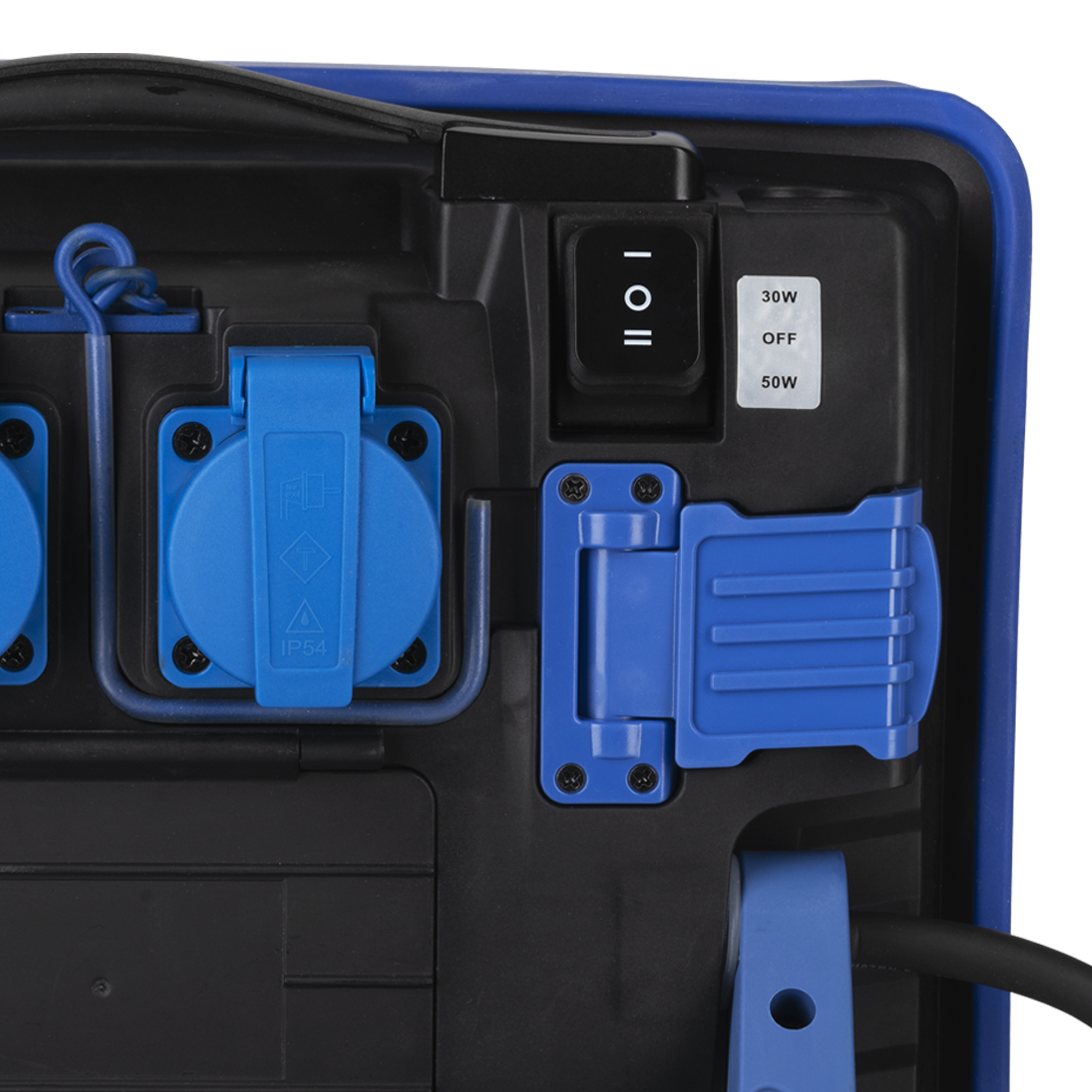 BAI RoBust LED Work Switch Portable Arbeitsleuchte CLI 30/50W 4000K-6500K 3000/5000lm dimmable Körper Blau 220-240V IP54 IK10 3m mit Stecker AC en 2x Steckdose