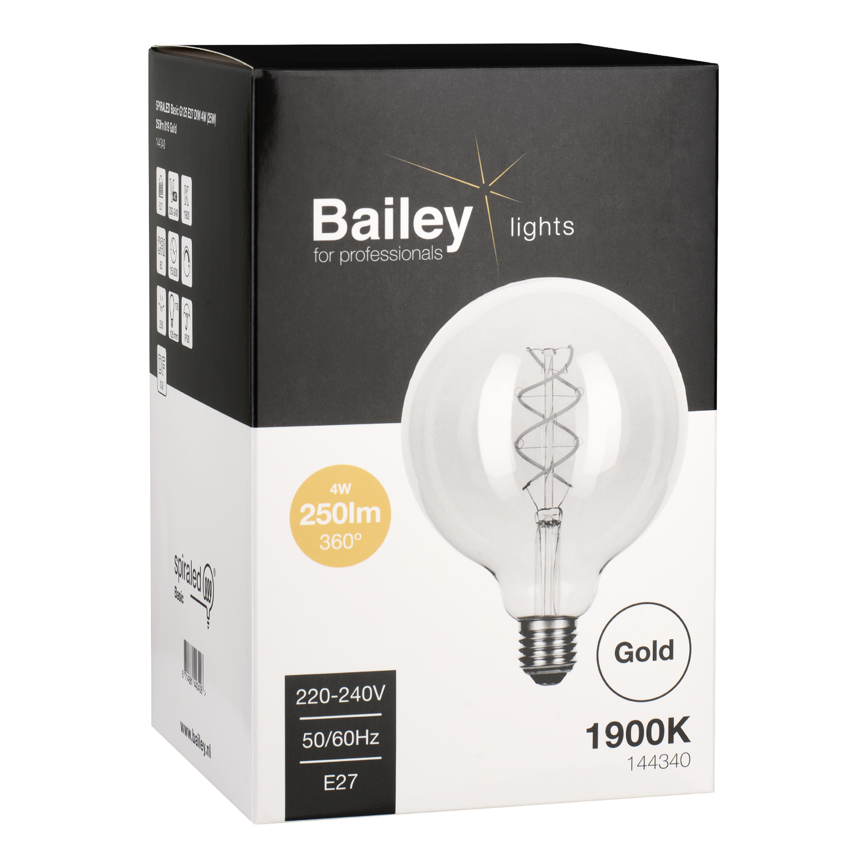 BAI Spiraled Basic Globe G125 E27 4W 1900K Gold 250lm (25W) Dimmbar 240V 320° 125x175mm DEKO LED Filament Lampe