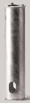BEGA Erdstück 70894, aus feuerverzinktem Stahl, nach EN ISO 1461. Länge 400 mm. Eine Schweißkonstruktion bestehend aus Grundplatte, Rohrstück und Flanschplatte mit Gewindeeinsätzen mit Befestigungsschrauben M6 x 16 aus Edelstahl, Werkstoff-Nr. 1.4301, seitliche Leitungseinführung 50 x 30 mm. Für die Befestigung von Leuchten und Lichtmasten mit Fußplatte im Boden.