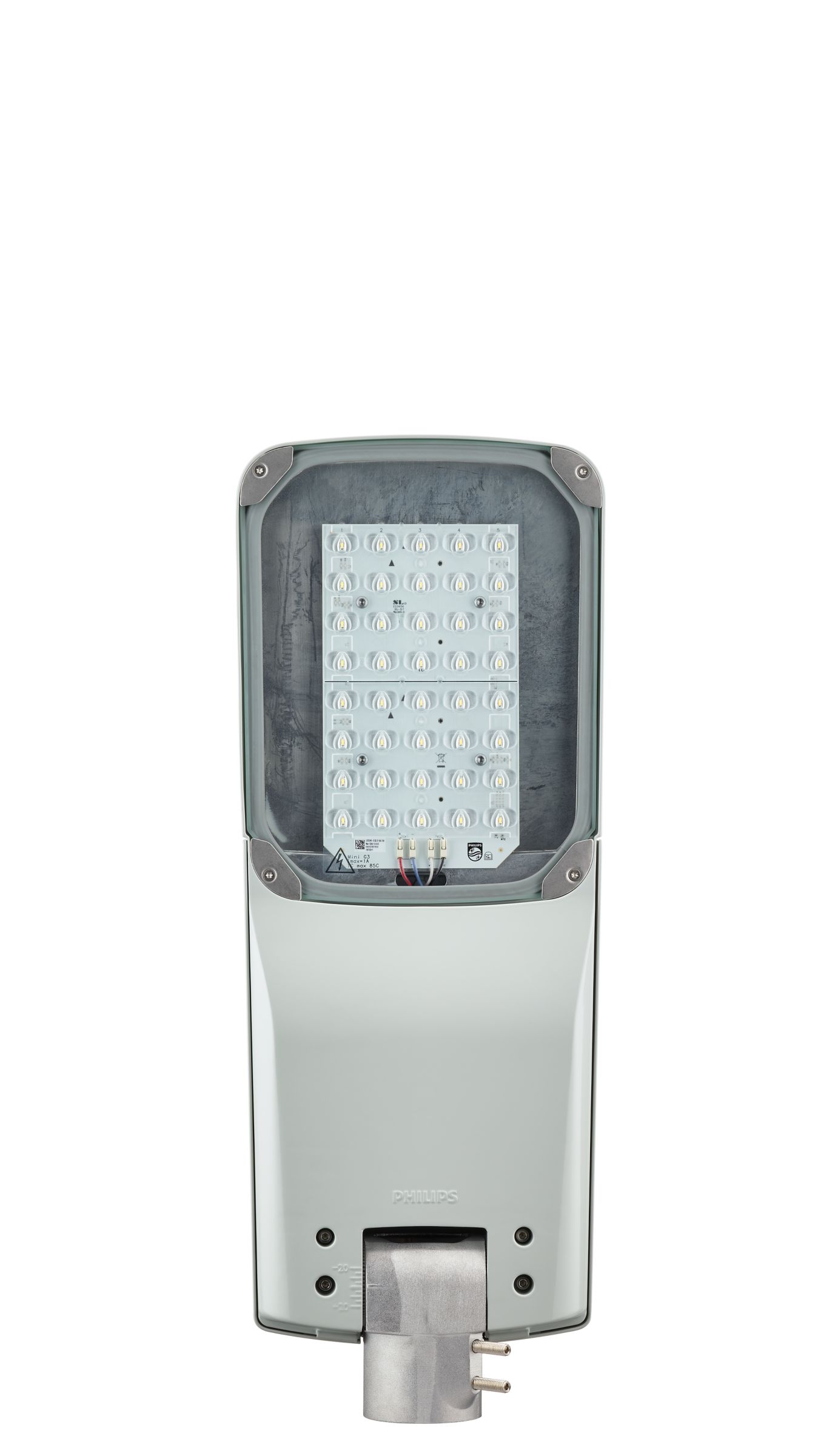Road & street light, Aluminiumdruckguss, Grau, Mastansatz für Durchmesser 76mm, Regelbares Netzteil, 6090 lm, 40.5 W, 150 lm/W, 4000 K, (0.381, 0.379) SDCM 5, CRI70, Extrem breitstrahlende Lichtverteilung 10, IP66 | Schutz gegen Eindringen von Staub, strahlwassergeschützt, IK09 | 10 J, SchutzklasseII, Überspannungsschutz bis 6 kV im Gegentaktmodus und bis 8 kV im Gleichtaktmodus, Kabel (6,0m) ohne Steckverbinder, 2 Steckverbinder, 5-polig