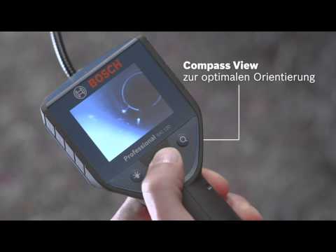 Inspektionskamera GIC 120, Die Inspektionskamera GIC 120 Professional ist ein kompaktes Werkzeug zum schnellen und bequemen Inspizieren. Mit der Funktion Compass View bietet sie eine klare räumliche Orientierung. Die Quick Connector-Technologie gestattet dem Benutzer einen schnellen und einfachen Wechsel des Kamerakabels und ermöglicht gleichzeitig die sichere Aufbewahrung des Geräts. Die kompakte Bauweise mit verbesserter Ergonomie bietet beste Handhabung in allen Situationen - und das sogar in ungewöhnlichen Positionen. Das Gerät eignet sich für zahlreiche Anwendungsbereiche wie z. B. die Kontrolle des Inneren von Verteilerkästen, Rohren und Wandhohlräumen sowie für Hydrauliksysteme und Anwendungen im Automobilbereich. Zum besseren Erkennen von Details wird die GIC 120 Professional mit einer praktischen digitalen Zoomfunktion ausgeliefert. Zusätzlich sorgt ein 120 cm langes Kamerakabel mit integriertem hellen LED-Licht dafür, dass enge Stellen erreichbar sind und an dunklen Stellen klare Sicht herrscht. Kamerakabel für GIC 120 C, Ø 8,5 mm, Länge 120 cm (1 600 A00 9B9). Haken, Magnet, Spiegel. 4 x 1,5 V-LR6-Batterie (AA)