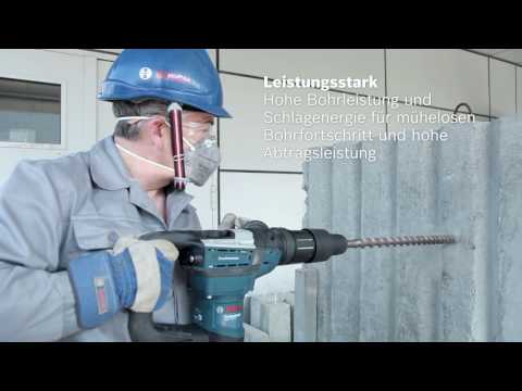 Bohrhammer mit SDS max GBH 5-40 D, Der GBH 5-40 D Professional ist das kabelgebundene Einstiegsmodell im Bosch SDS max Bohrhammer Segment. Durch das geringe Gewicht und die kompakte Bauform ist er ideal für Arbeiten an unzugänglichen Stellen. Der Bohrhammer ist auf Langlebigkeit ausgelegt und zeichnet sich durch robuste Metallkomponenten sowie ein optimiertes Schmiersystem aus. Sein starker Motor liefert 8,5 Joule Schlagenergie für einen schnellen Bohrfortschritt und eine hohe Abtragsleistung. Dieses Elektrowerkzeug eignet sich für Bohrungen bis zu einem Durchmesser von 40 mm, sowie für leichte Meißelarbeiten in Beton und Stein. Es ist kompatibel mit verschiedenen Systemzubehören zur Staubabsaugung. Ferner verfügt der GBH 5-40 D Professional über eine Überlastkupplung und Drehzahlvorwahl. Handwerkerkoffer (ET-Nr. 1 605 438 1D1). 1x Zusatzgriff (2 602 025 062). Fetttube (ET-Nr. 1 615 430 010). Maschinentuch