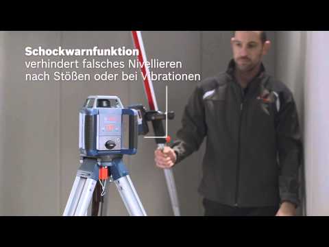 Rotationslaser GRL 400 H, Einfach bedienbar und immer bereit der intuitiv mit einem Knopf bedienbare GRL 400 H Rotationslaser ist jederzeit und sofort einsatzbereit, wenn es um die Nivellierung im Freien geht. Sein Ein-Knopf-Bedienfeld, die elektronische Selbstnivellierung und das praktische Batteriefach bedeuten unkompliziertes Arbeiten mit einfacher Einrichtung und kinderleichtem Batteriewechsel ohne das Werkzeug überhaupt bewegen zu müssen. Mit einer Genauigkeit von ± 2,4 mm auf 30 m und einer ADS Stoßwarnfunktion, die kleinste Positionsveränderungen des Geräts meldet, verhindert das GRL 400 H Nivellierfehler und liefert durchgängig präzise Ergebnisse. Von der Bestimmung von Auf- und Abtragswerten für Aushub und Fundamente über die Nivellierung von Betonverschalungen bis zum Landschaftsbau: dieses Gerät macht seine Arbeit exzellent. Dank IP56-Eindringschutz gegen Wasser und Staub hält dieser Rotationslaser den rauen Bedingungen beim Einsatz im Freien stand. Baustativ BT 170 HD Professional (0 601 091 B00). Handwerkerkoffer. Messstab GR 240 Professional (0 601 094 100). Laser-Empfänger LR 1 Professional (0 601 015 400). Batteriefach (1 609 203 M02). 2 x Batterie LR20 1,5V (D). 1 x 9 V-Blockbatterie (6LR61)
