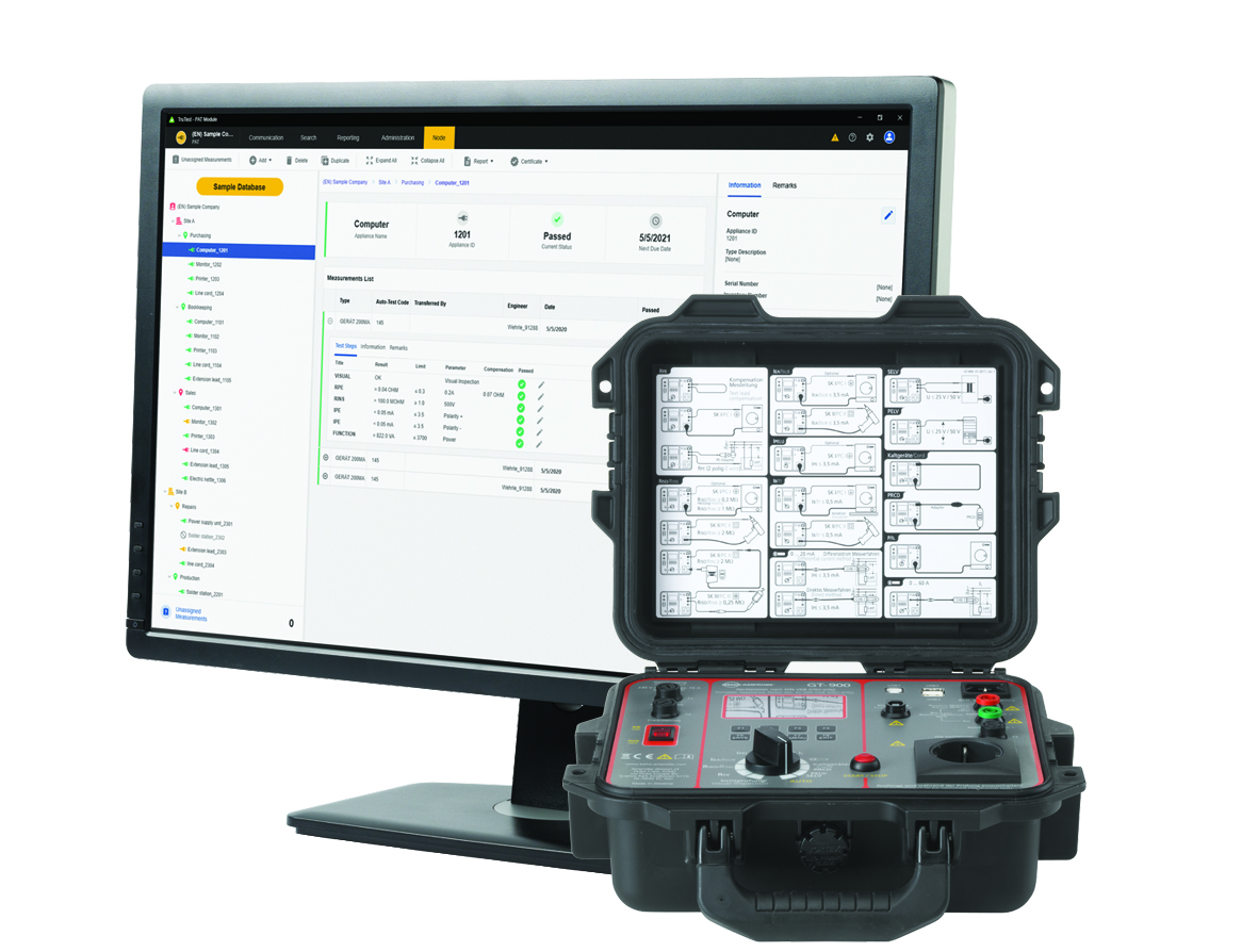 Datenbank im Prüfgerät (Bi-direktional), automatische und vorinstallierte Prüfabläufe, PRCD, PRCD-S, PRCD-S+ und PRCD-K Prüfung, USB-Anschlüsse HID kompatibel, komfortable Software mit Datenbank ·es control professional zur Protokollierung erhältlich (optional), Datenbank im Prüfgerät, Messwertspeicher für ca 5.000 Gerätemessungen/Prüflinge im Prüfgerät. Die TruTest Software ermöglicht den schnellen und einfachen Import von Messergebnissen direkt aus Testgeräten, die Verwaltung von Dateien, die von Geräten übertragen wurden, und die manuelle Eingabe von Daten nach Bedarf.