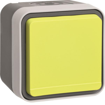 Steckdose SCHUKO mit gelbem Klappdeckel AP W.1 grau