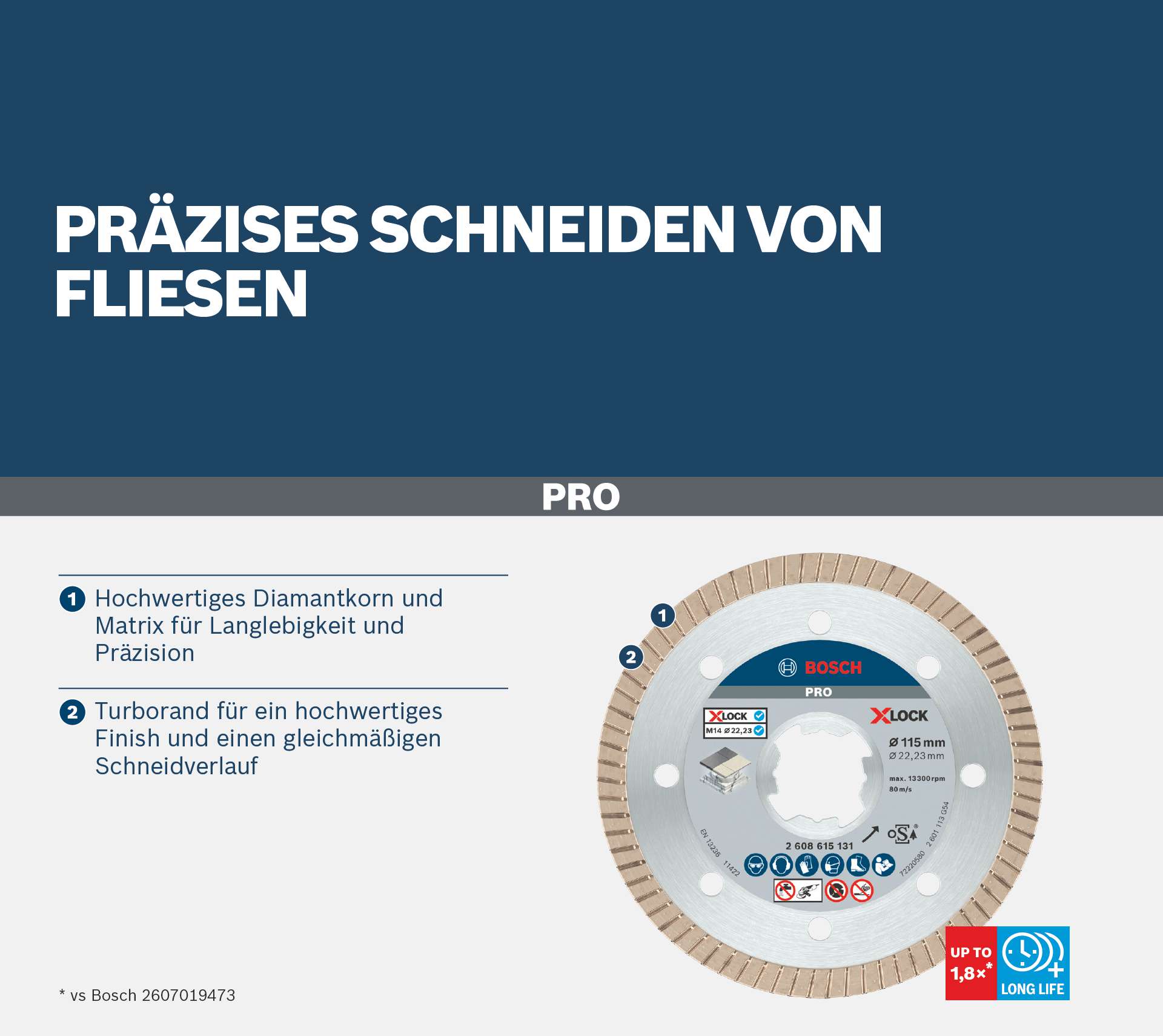 Präzises Schneiden von Fliesen! Hochwertiges Diamantkorn und Matrix für Langlebigkeit und Präzision Beim Schneiden von Fliesen ist Qualität das A und O: Eine gute, spezielle Diamanttrennscheibe wie die PRO Ceramic bietet Profis glatte Schnitte bei minimaler Splitterbildung ? für weniger Abfall und hervorragende Arbeitsergebnisse.