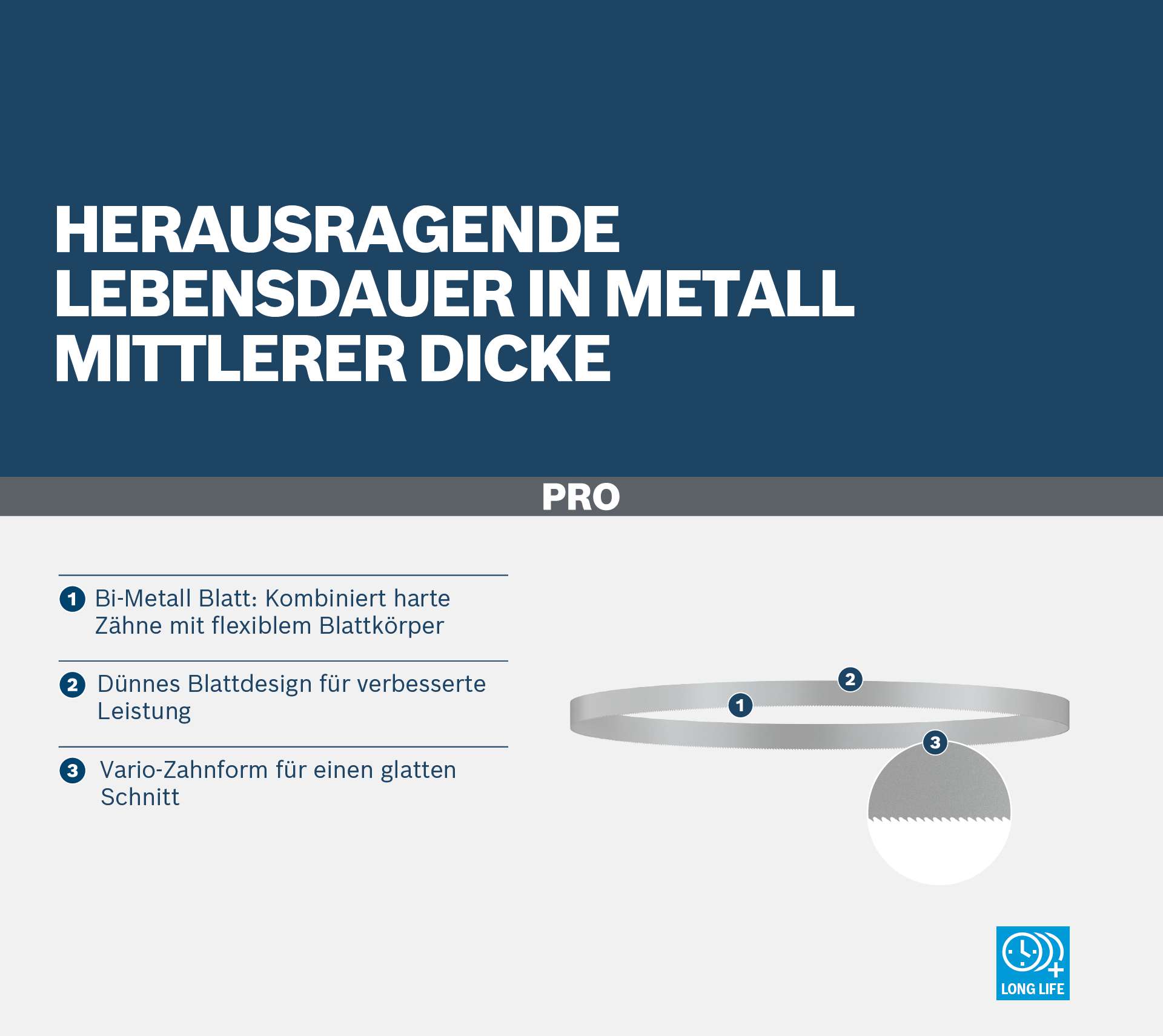 Herausragende Lebensdauer in Metall mittlerer Dicke! Bi-Metall Blatt: Kombiniert harte Zähne mit flexiblem Blattkörper Das Schneiden von Metall mit einer Bandsäge kann eine echte Belastung für die Sägeblätter sein. Mit dem PRO CB281418 Bandsägeblatt hast du ein langlebiges Zubehör zur Hand, mit dem du hochwertige Schnitte erzielen kannst.