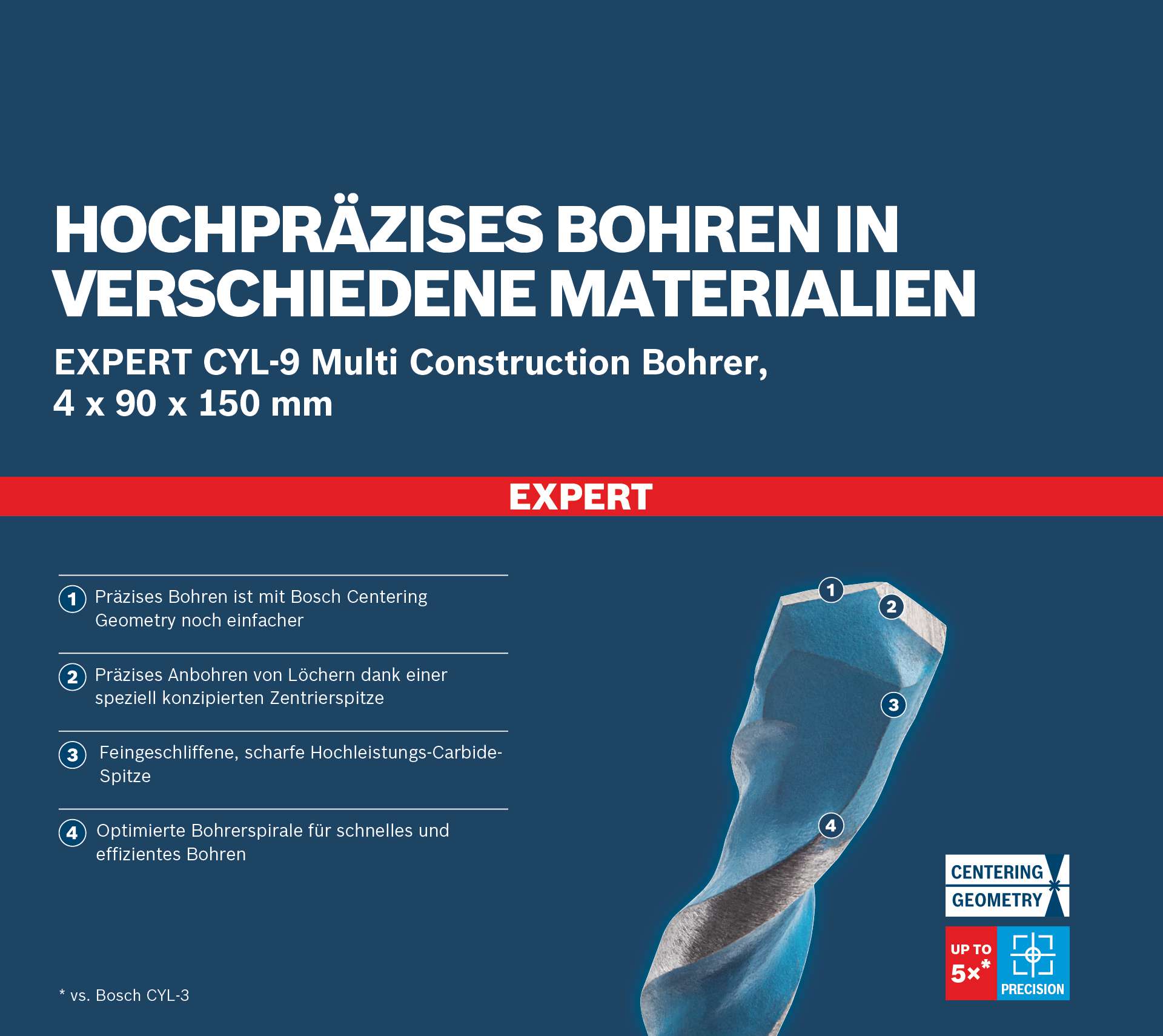 · Präzises Bohren mit der patentierten Bosch Centering Geometry.