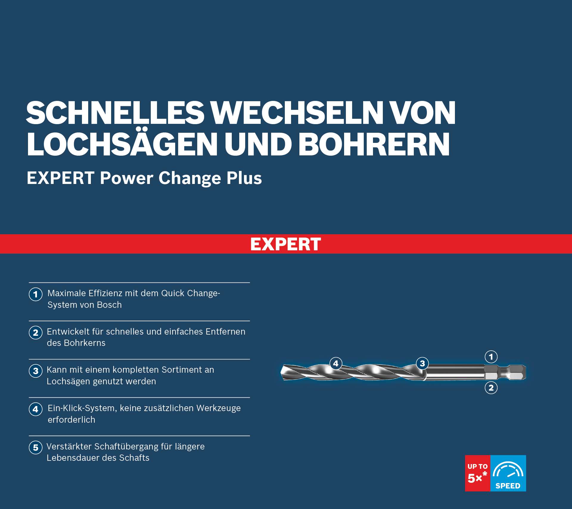 Zum Bohren von Vorbohrungen und zum Führen von Lochsägen! Wolfram-Carbide-Spitze für langlebiges Bohren durch verschiedene Materialien Der Zentrierbohrer für EXPERT PC Plus Lochsägen hilft dir, Vorbohrungen zu erstellen, um die Lochsäge in Position zu bringen und ein Verlaufen zu verhindern. Es wurde für die schlüssellose Schnittstelle EXPERT Power Change Plus entwickelt. Klicke ihn in deinen EXPERT Power Change Halter, um deine Lochsägen effektiv zu führen. Wir haben den Zentrierbohrer für die EXPERT PC Plus Lochsäge mit Carbide-Spitzen ausgestattet, um hohe Festigkeit und eine lange Lebensdauer zu gewährleisten. Du kannst damit Vorbohrungen erstellen, wenn du mit dem EXPERT Construction Material PC Plus Löcher in Ziegel schneiden möchtest. Beim Arbeiten mit dem EXPERT Multi Material PC Plus unterstützt dich der Zentrierbohrer beim Bohren durch Ziegel und weiche Fliesen.