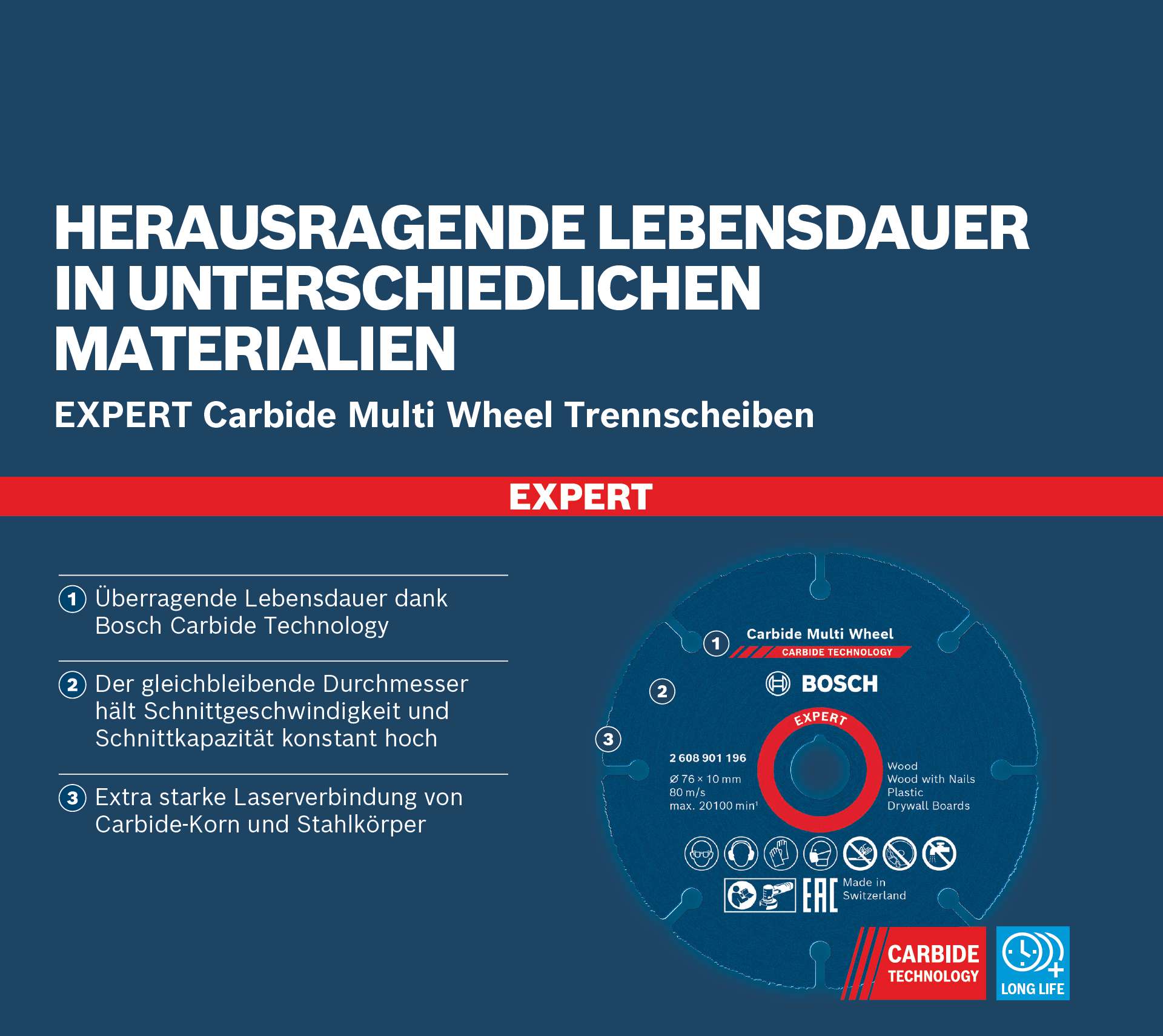· Herausragende Lebensdauer durch Bosch Carbide Technology
