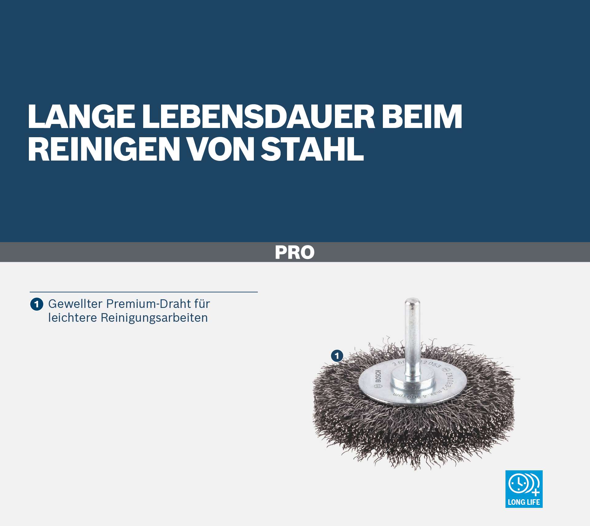 Lange Lebensdauer beim Reinigen von Stahl! Gewellter Premium-Draht für leichtere Reinigungsarbeiten Benötigst du eine langlebige Scheibenbürste zum Reinigen kleiner Flächen, Kanten und Rillen? Dann ist die PRO Metal clean Scheibenbürste die richtige Wahl. Sie wurde mit hochwertigem gewellten Draht versehen, damit du leichte Reinigungsarbeiten effizient erledigen kannst ? immer und immer wieder.