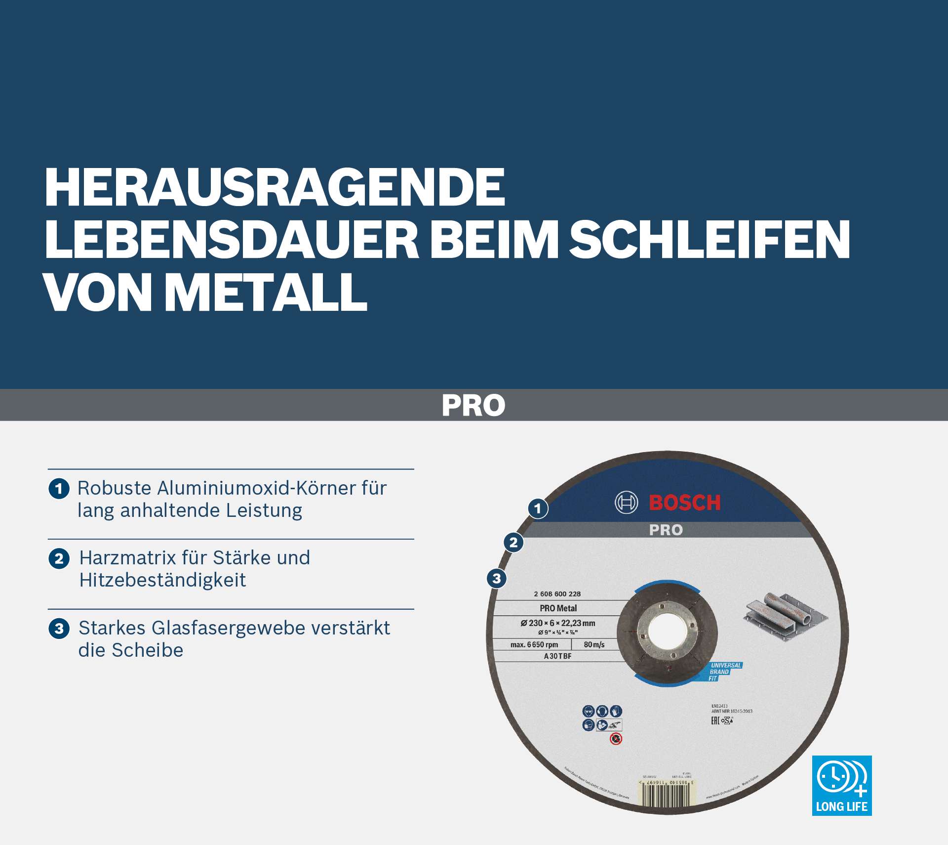 Herausragende Lebensdauer beim Schleifen von Metall! Robuste Aluminiumoxid-Körner für lang anhaltende Leistung Wir haben die PRO Metal für Metallarbeiter entwickelt, die eine zuverlässige und langlebige Schleifscheibe zum Schleifen von Metall benötigen.