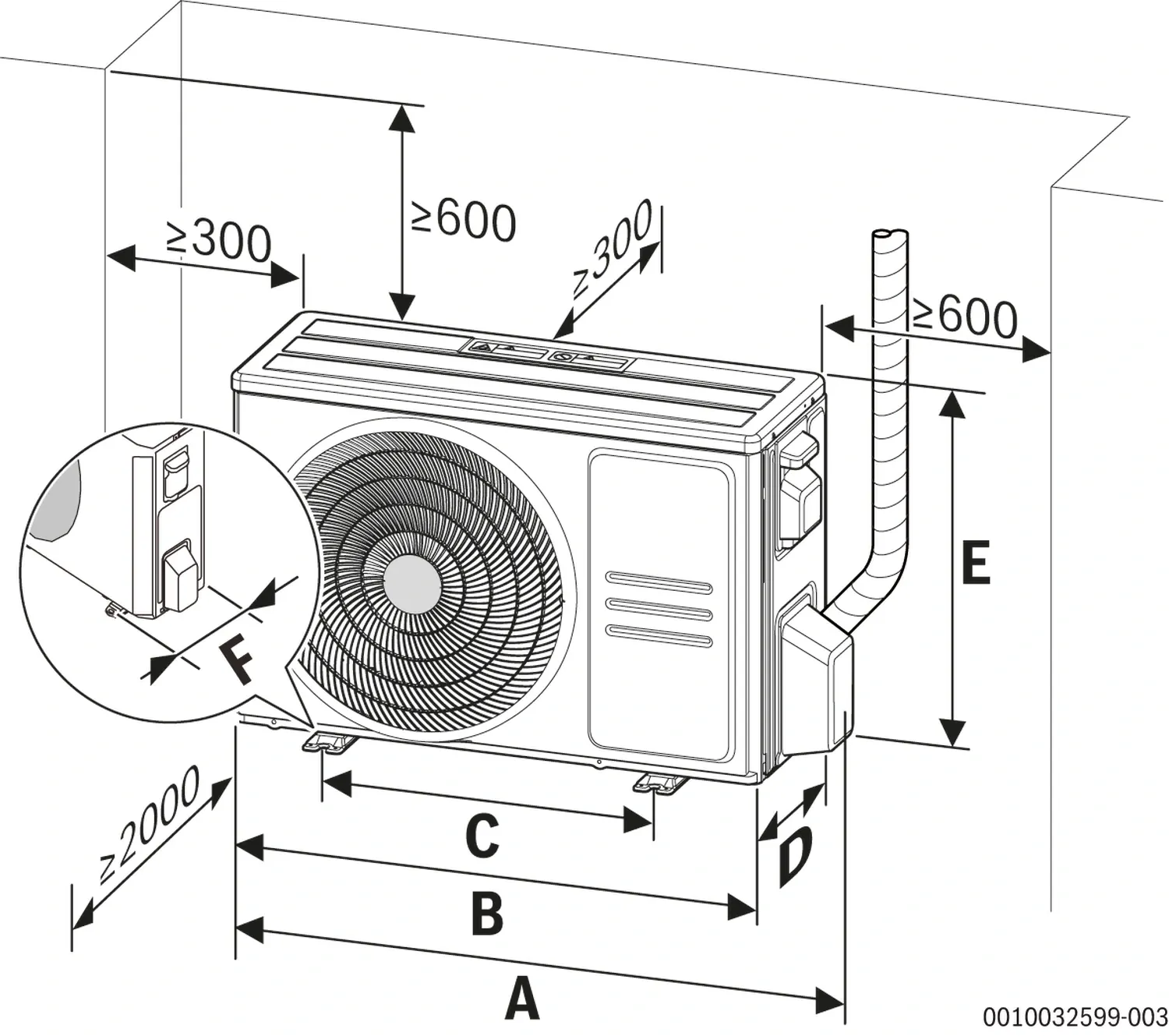 Max. Höhendifferenz zwischen Innen- und Außeneinheit: 10 m