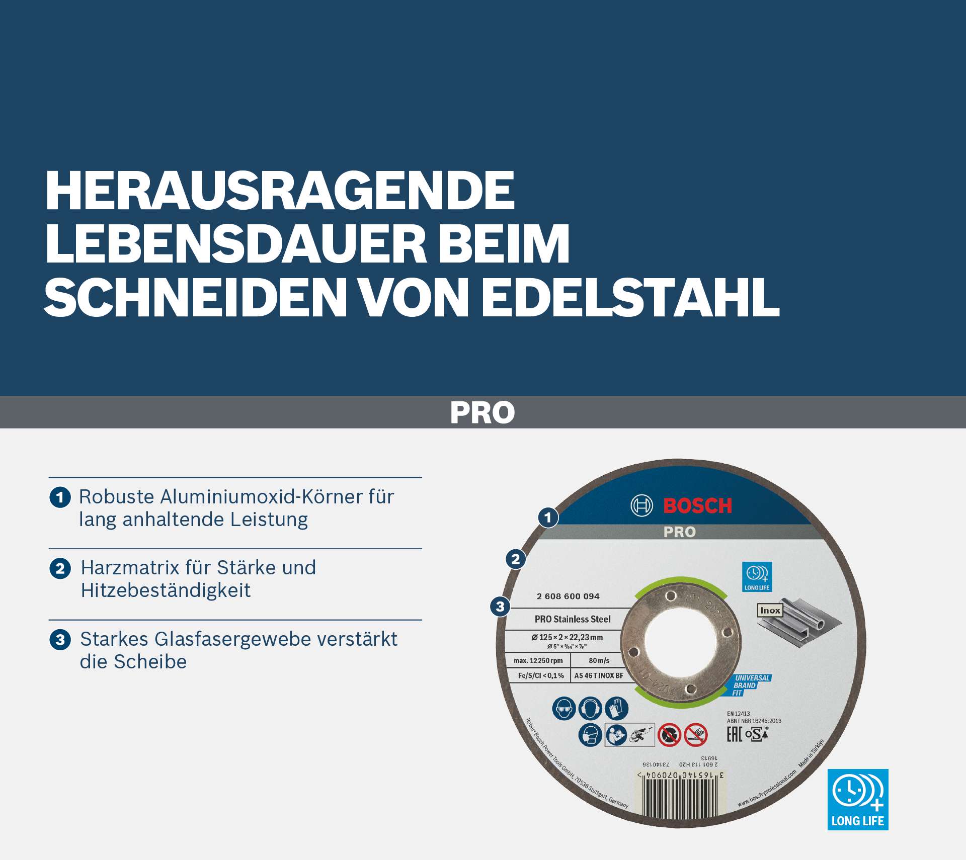 Herausragende Lebensdauer beim Schneiden von Edelstahl! Robuste Aluminiumoxid-Körner für lang anhaltende Leistung Bist du Metallarbeiter und benötigst eine langlebige Scheibe für gerade Schnitte in Edelstahl? Die PRO Stainless Steel verfügt über einen dicken Körper, damit sie die stabile Leistung bietet, die du für diese Arbeit benötigst.