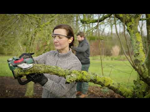 Akku-Kettensäge UniversalChain 18. Leicht und stabil für kontrolliertes Ausasten. Der Messer-Protector greift Äste beim Unterschneiden, um Schäden zu minimieren. Konzentrisches SDS-System erlaubt werkzeugloses und einfaches Spannen und Wechseln der Kette. Ölstandsanzeige und automatische Kettenschmierung für Laufruhe. Sicheres Schneiden dank Handschutz und Messer-Protector zum Schutz vor Rückschlag. Ideal für saubere Schnittergebnisse bei Hartholz- oder Obstbäumen. Syneon Technology für optimale Kraft und maximale Laufzeit. POWER FOR ALL: ein Akku für das komplette Home & Garden-Gerätesystem. Sägekette. Kettenschutz. Führungsstange. Karton. Kettensägenöl 80 ml