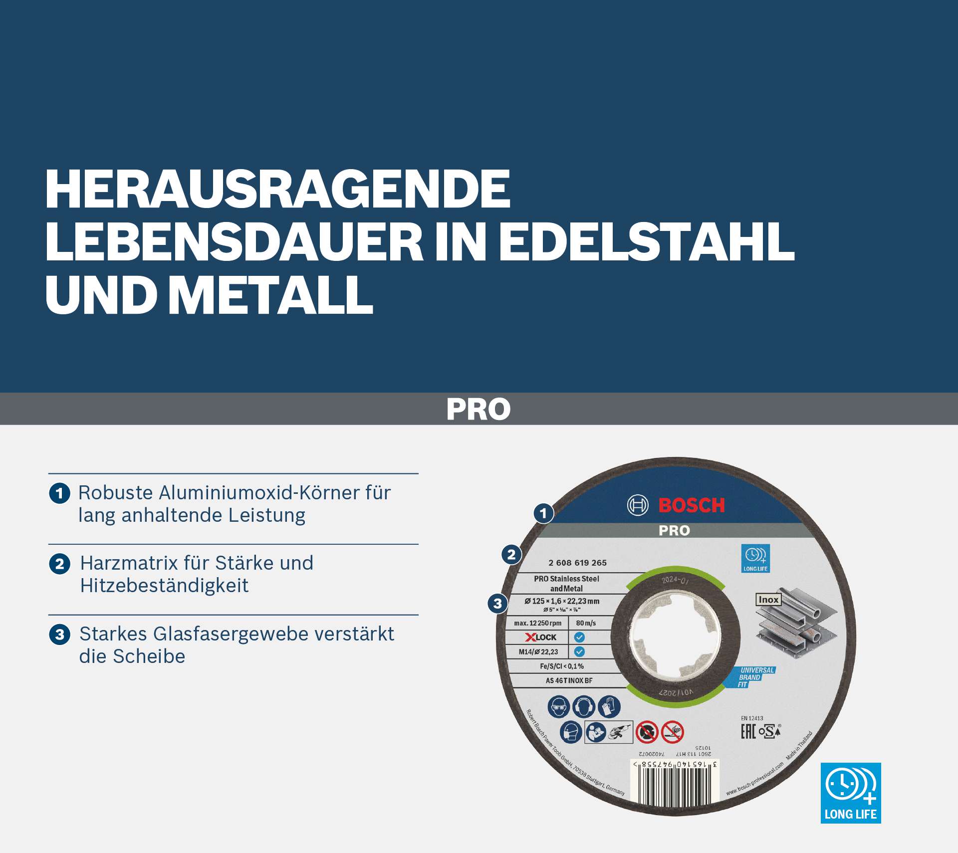 · Trennscheiben von Bosch erfüllen die höchsten Sicherheitsanforderungen wie EN 12413