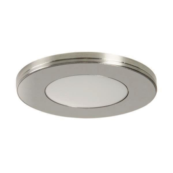 LED-Einbau- / Anbaudownlight, inkl. optionalem Anbaugehäuse, Blende chrom glänzend, rund. Ausgeführt in kompakter Bauform für werkzeuglose Schnellmontage zum Deckeneinbau. Leuchte optimiert zur Installation in Möbeln und Holzwerkstoffen. Diese Leuchte ist sowohl als Einbau- (Lochausschnitt: 56 mm, Einbautiefe: 3,5 mm, Aufbauhöhe: 2,2 mm), als auch als Anbau- leuchte (Gesamthöhe: 5,9 mm, Schraubabstand: 67 mm) durch mitgeliefertes Anbaugehäuse zu verwenden. Außenkante nickel matt, magnetisch befestigte Blende in Farbton laut Artikeltabelle. Montageart: Einbaumontage, Montageort: Deckenmontage, Material: Aluminium / Stahl / Kunststoff, Schutzart raumseitig: nach DIN EN 60529: IP20, Schutzklasse: (EN 61140) III, Spannung: 12V , Leistung: 2,6 W, Anzahl der Leuchtmittel / Fassungen: 1 Stück, Lichtstrom: 185 lm, Farbtemperatur: 3.000 K, Abstrahlwinkel: 120°, Verstellbarkeit: nicht verstellbar, ohne Betriebsgerät, Dimmbar: Abhängig vom Betriebsgerät, Art der Dimmung: Abhängig vom Betriebsgerät.
