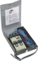 Elektronischer, aktiver Phasenvergleicher DEHNcap/PC-LRM in Kunstledertasche untergebracht, mit drei getrennten LED-Anzeigen nach DIN VDE 0682-415 (EN/IEC 61243-5) für das allpolige Feststellen der Phasengleichheit an Schaltanlagen mit LRM-Messbuchsen. Einsatz an HR-Messbuchsen über zwei HR-LRM-Messadapter. Für Nennspannungen bis 45 kV / 50 Hz (Drehstromsystem). Mit integrierter Eigenprüfvorrichtung und Batterieüberwachung. Gerät erfasst Nulldurchgänge der beiden zu vergleichenden Systeme.