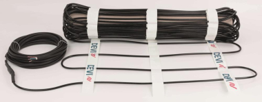 Montagefertige Heizmatte mit einer Anschlussleitung geeignet für den Einbau in Stahlbeton, Estrich oder Sandbett. Mit zusätzlicher Schutzumflechtung zum Einsatz der FI- Schutzschaltung. Dieses Heizmattensystem eignet sich besonders für den Einbau in verwinkelten und/oder großen Flächen, da das Zurückführen des zweiten Anschlusses entfällt. Einschl. werkseitig anmontierter wasserdichter Muffen und einem 30 m langen Kaltleiter, nach Einbauanleitung systemgerecht verlegen. Messen der Isolations- und Gesamtwiderstände. Heizleitung nach IEC 60800, Spannung: 400 V, Nenngrenztemperatur: 80°C, Spezifische Heizleistung: 300 W/m², Widerstandstoleranz: +10% / -5%, mindestverlegetemperatur: 5°C, kleinster Biegeradius: 5 x dA, Schutzart: IP X7, Fläche 14,8 m², 4250 W,