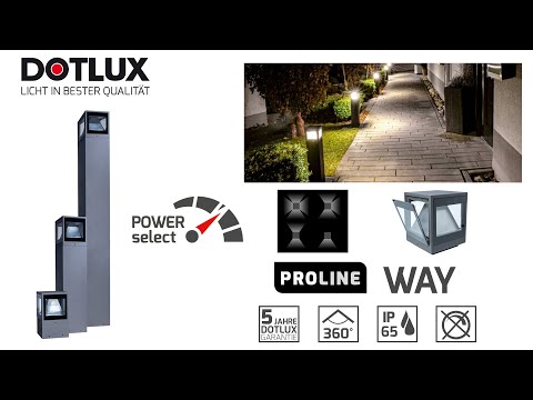 Dotlux LED Pollerleuchte WAY 20 cm Frei wählbare Lichtaustrittfläche durch austauschbare Glas- und Abdeckplatten Power-Select ermöglicht die Einstellung der Systemleistung 50% / 100% Hochwertiges Aluminiumgehäuse mit Pulverbeschichtung in DB703 Robustes, spritzwassergeschützes Design für den Außenbereich mit IP 54 Schutz Blendfreie und homogene Lichtverteilung mit hoher Farbwiedergabe Ra>82 EASYbase-Plattform ermöglicht einfache und schnelle Montage Zum Durchschleifen mit Anschlussbox (Eingang und Ausgang jeweils für 3 x 2,5 mm² Kabel) Montagtebasis aus spezieller Aluminiumlegierung, zugelassen für Installation mit Erdkontakt Insektenfreundliche Beleuchtung durch warmweiße LED's
