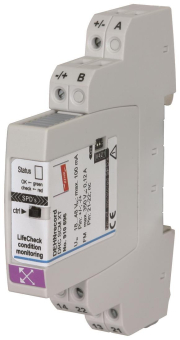 Condition Monitoring Einheit DEHNrecord, Hutschienengerät mit integriertem LifeCheck-Sensor für die zustandsorientierte Überwachung von max. 10 BLITZDUCTOR XT/XTU mit LifeCheck. Optische Ableiter-Zustandsmeldung über 3-Farben-LED kombiniert mit FM-Signalisierung (Öffner).