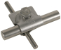 MV-Klemme zum Verbinden einer Erdeinführung oder Fangstange (Ø 16 mm) mit Runddraht (Ø 8-10 mm). Blitzstromtragfähigkeit geprüft bis 200 kA (10/350 µs) in Anlehnung an DIN EN 62561-1. Ausführung zweiteilig mit Sechskantschraube und Gewinde im Unterteil.