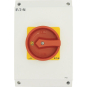 Hauptschalter, Sortiment: Hauptschalter, Wartungsschalter, Reparaturschalter, Typkenner: T5B, Stopp-Funktion: NOT-AUS-Funktion, mit rotem Drehgriff und gelbem Sperrkranz, 6-polig, Verriegelungsvorrichtung: In der Position 0 (Aus) verriegelbar, Schutzart: IP65, Bauform: Oberflächenmontage, Schaltwinkel: 90 °, Bemessungsbetriebsleistung AC-23A, 50 - 60 Hz 400 V: P = 30 kW, Bemessungsdauerstrom: Iu = 63 A, 3 Baueinheit(en), Normen und Bestimmungen: IEC/EN 60947, VDE 0660, IEC/EN 60204, CSA, UL, Lasttrennschalter nach IEC/EN 60947-3