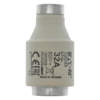 Sicherung, Sicherungseinsatz, Niederspannung, 32 A, AC 500 V, D3, gL/gG, IEC, träge, E33, für Haushalt und allgemeine industrielle Anwendungen, IEC 60269-3, VDE 0636