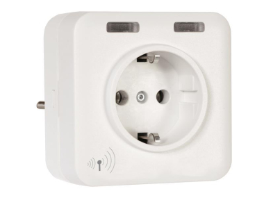 Der kaskadierbare Steckdosen-Repeater RXP05 empfängt Easywave-Telegramme und sendet sie mit einer kurzen Verzögerung von ca. 0,3 Sekunden wieder aus.