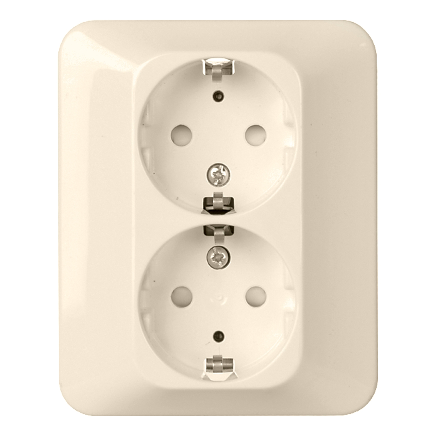Steckdosen 2-fach mit erhöhtem Berührungsschutz, Farbe: reinweiß. 16 A 250V AC, halbversenkt, auch für 55er Einbaudosen, Steckdosen sind mit Überspannungsschutzmodul als Gerätefeinschutz nachrüstbar. Verwendbar für Unterputzmontage in. Schutzart IP 20. sowie in Geräteträgern mit einer Einbautiefe von mindestens 32 mm. Steckklemmen: Klemmbereich für Kupferleiter 1,5 mm und 2,5 mm. Verbindungsklemmen nach VDE 0620.