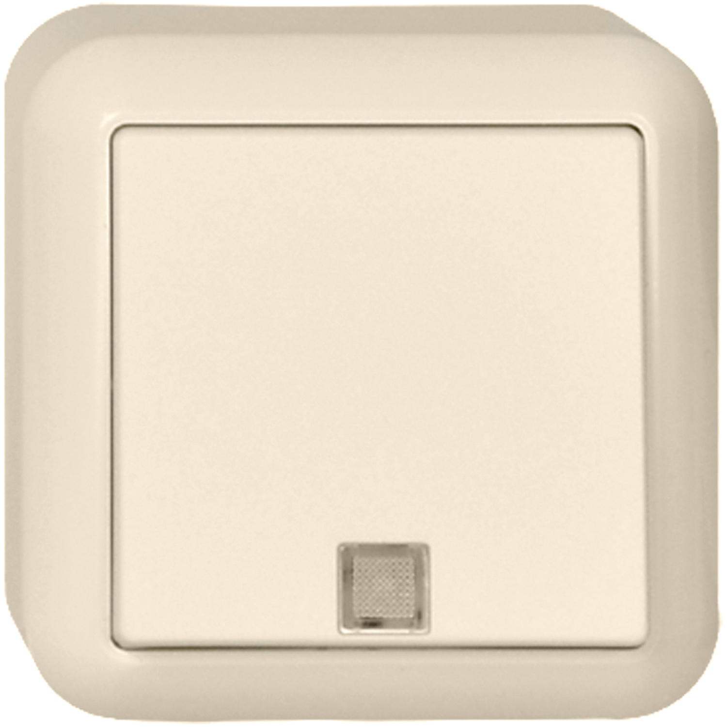 Wechsel-Kontrollschalter, 10 A 250V AC, Farbe: reinweiß, mit lichtintensiver Glimmlampe, Für Aufputzmontage, Schutzart IP 20, mit Grundplatte, für Montage auf brennbarem Untergrund geeignet. Steckklemmen: Klemmbereich für Informationsleitungen ab Leitungsdurchmesser 0,5mm, für Kupferleiter 1,5 mm und 2,5 mm.