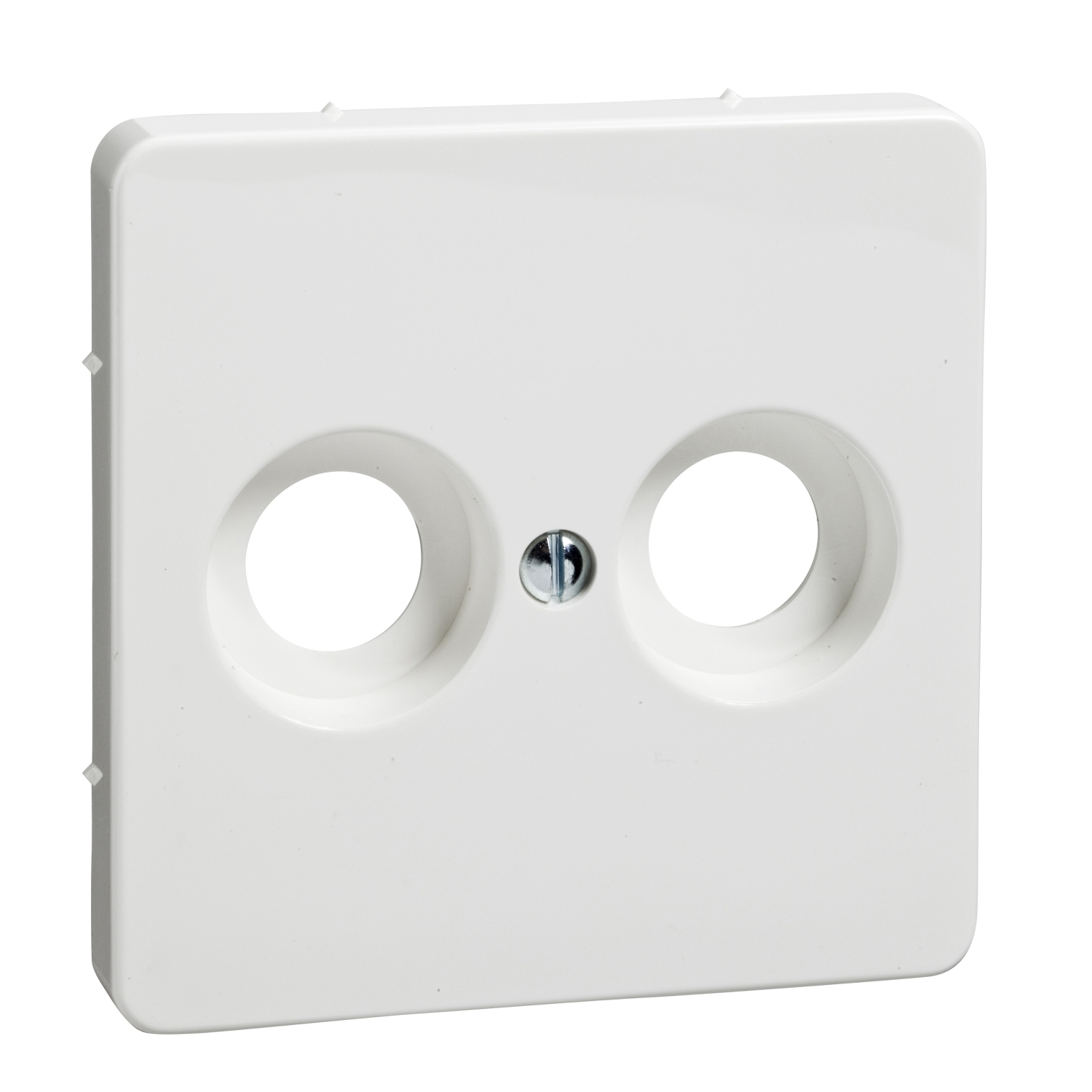 Zentralplatte für Antennensteckdosen, mit 2 Öffnungen, für Antennensteckdosen ohne F-Buchse, Farbe: reinweiß.