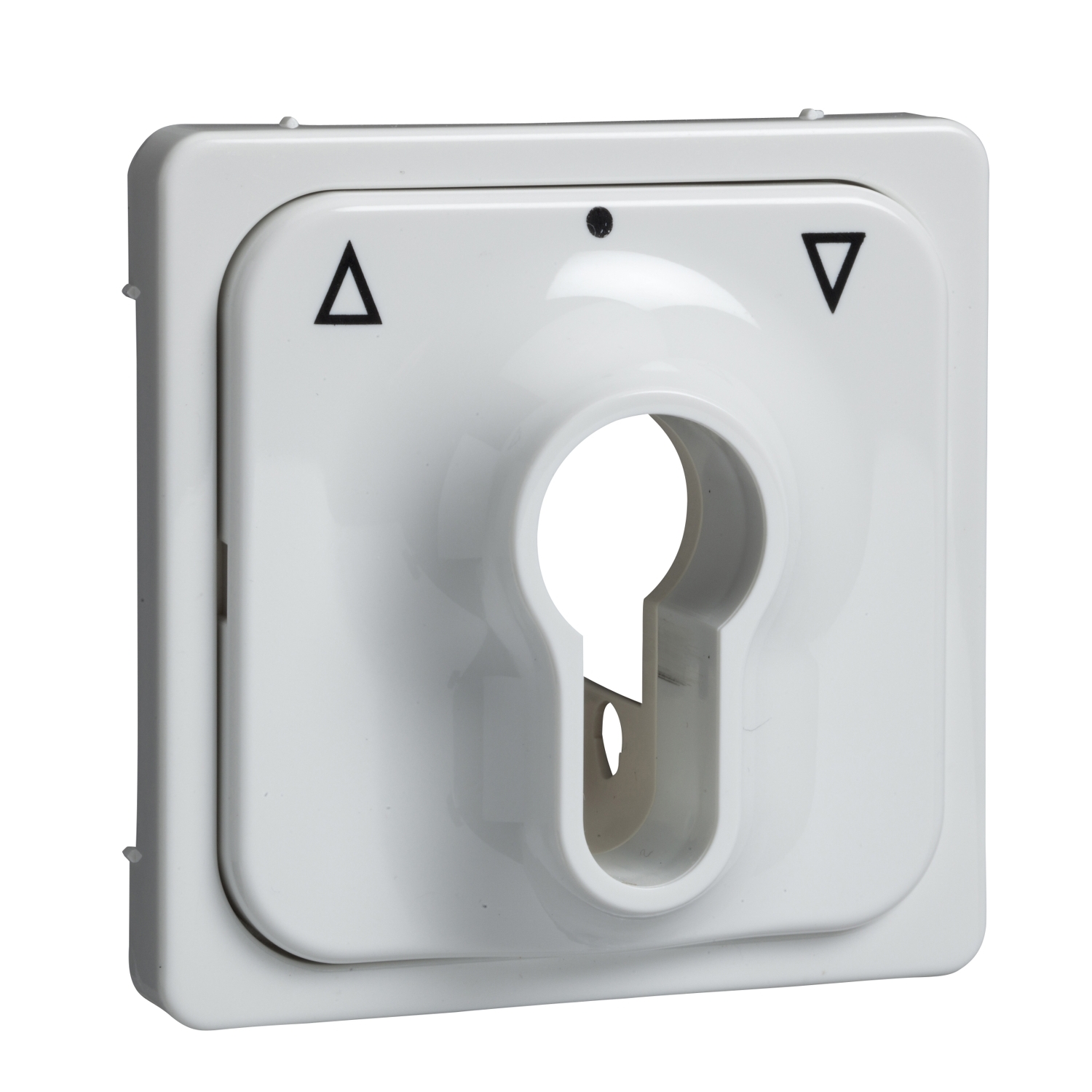 Zentralplatte für Schlüsselschalter. Farbe: reinweiß im Lieferumfang enthalten sind eine Blende mit Symbolen und eine neutrale Blende zur Komplettierung der Einsätze Artikelnummer 121900 und 121930.
