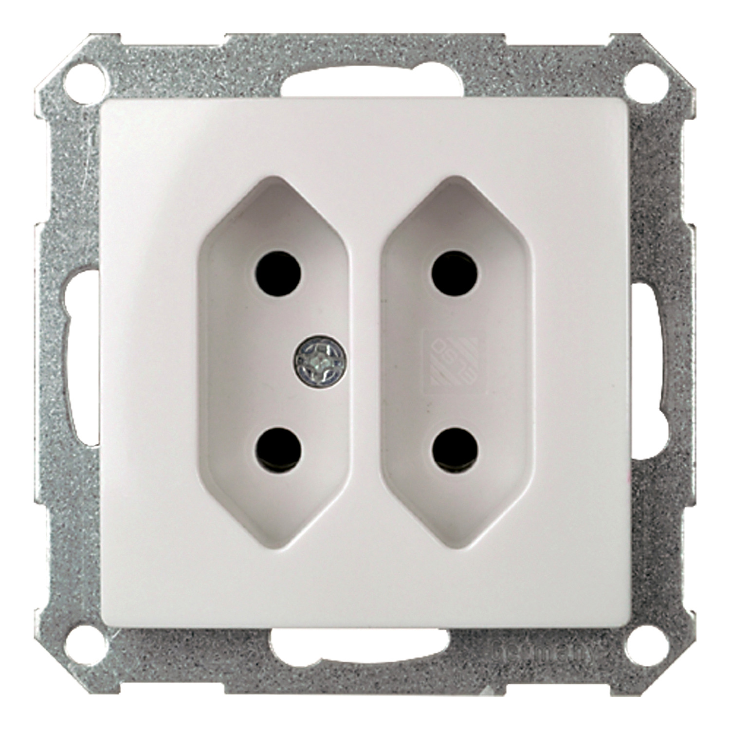 Doppeleuropasteckdoseneinsatz. Farbe: reinweiß für zwei angeformte Europastecker Steckdosen 16 A 250V AC Schraubklemmen Klemmbereich für Kupferleiter 1,5 mm² und 2,5 mm² für den sicheren Anschluss von Aluminiumleitern 2,5 mm² ohne Vorbehandlung.