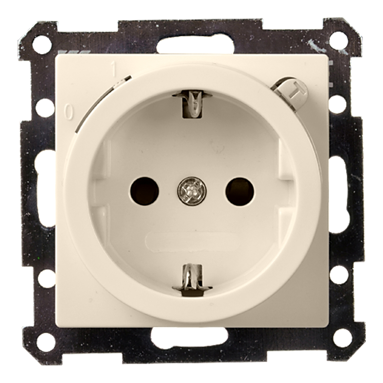 Steckdoseneinsatz mit FI-Schutz und erhöhtem Berührungsschutz, Farbe: reinweiß. Schutzkontakt-Steckdosen 16 A, 250V AC. Steckdosen mit Steckklemme sind mit Überspannungsschutzmodul als Gerätefeinschutz nachrüstbar, für Unterputzmontage. Schutzart IP 20. zur Beschriftung von Geräten ohne Schriftfeld stehen universelle Gerätesschriftfelder zur Verfügung, Steckklemmen Klemmbereich für Kupferleiter 1,5 mm² und 2,5 mm². Verbindungsklemmen nach VDE 0620.