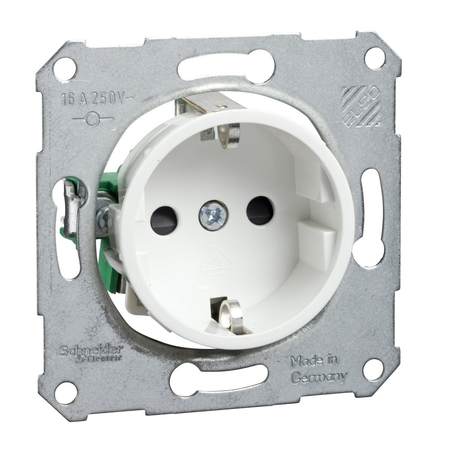 Steckdoseneinsatz mit erhöhtem Berührungsschutz für Zentralplatte, Farbe: reinweiß. Schutzkontakt-Steckdosen 16 A 250V AC. Steckdosen sind mit Überspannungsschutzmodul als Gerätefeinschutz nachrüstbar, für Unterputzmontage. Schutzart IP 20. Steckklemmen,Klemmbereich für Kupferleiter 1,5 mm² und 2,5 mm². Verbindungsklemmen nach VDE 0620.