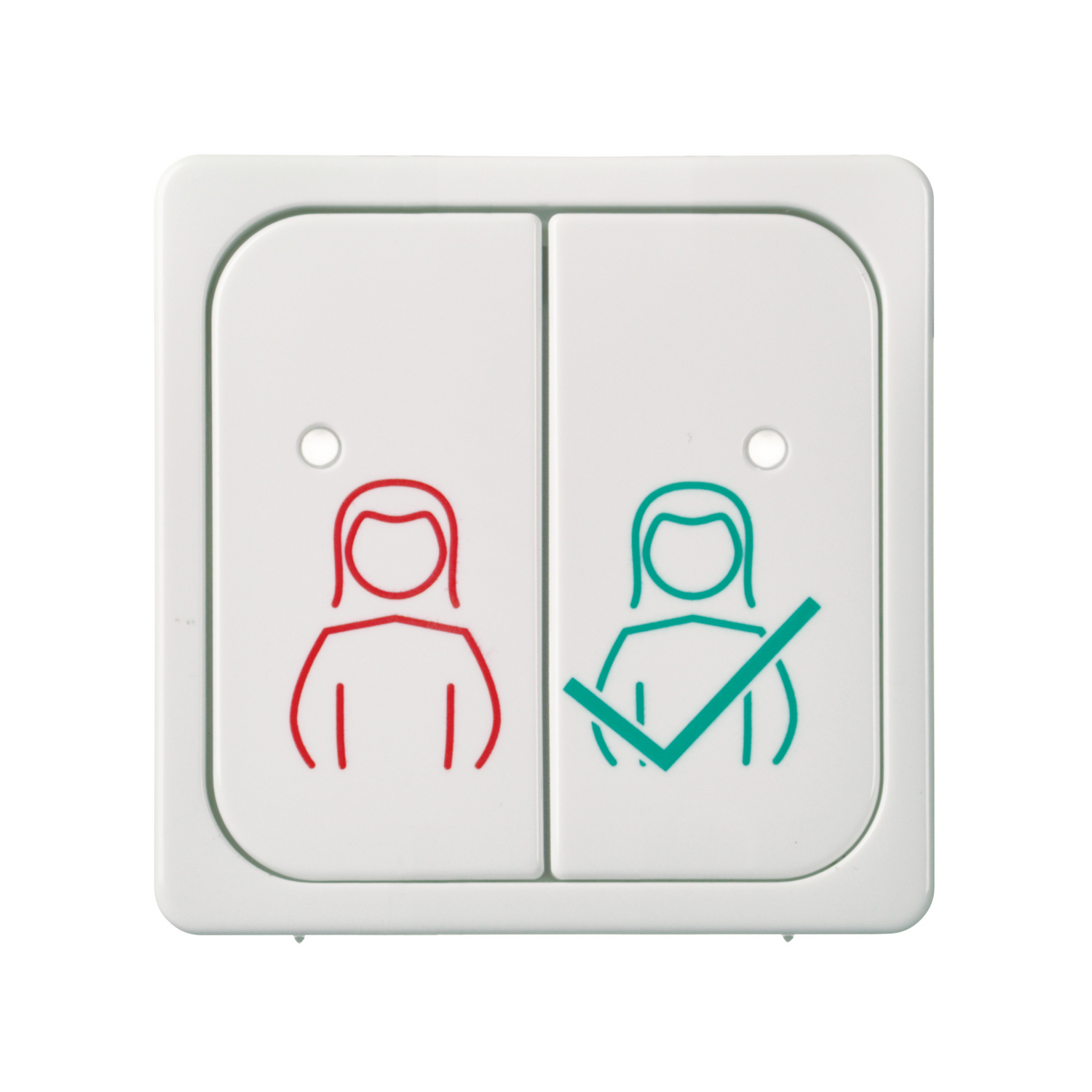 MEDIOPT care. Tastfläche 2-fach für Ruf-/Abstelltaster (Art. 735070) mit Symbolaufdruck für ELSO JOY, Farbe reinweiß.